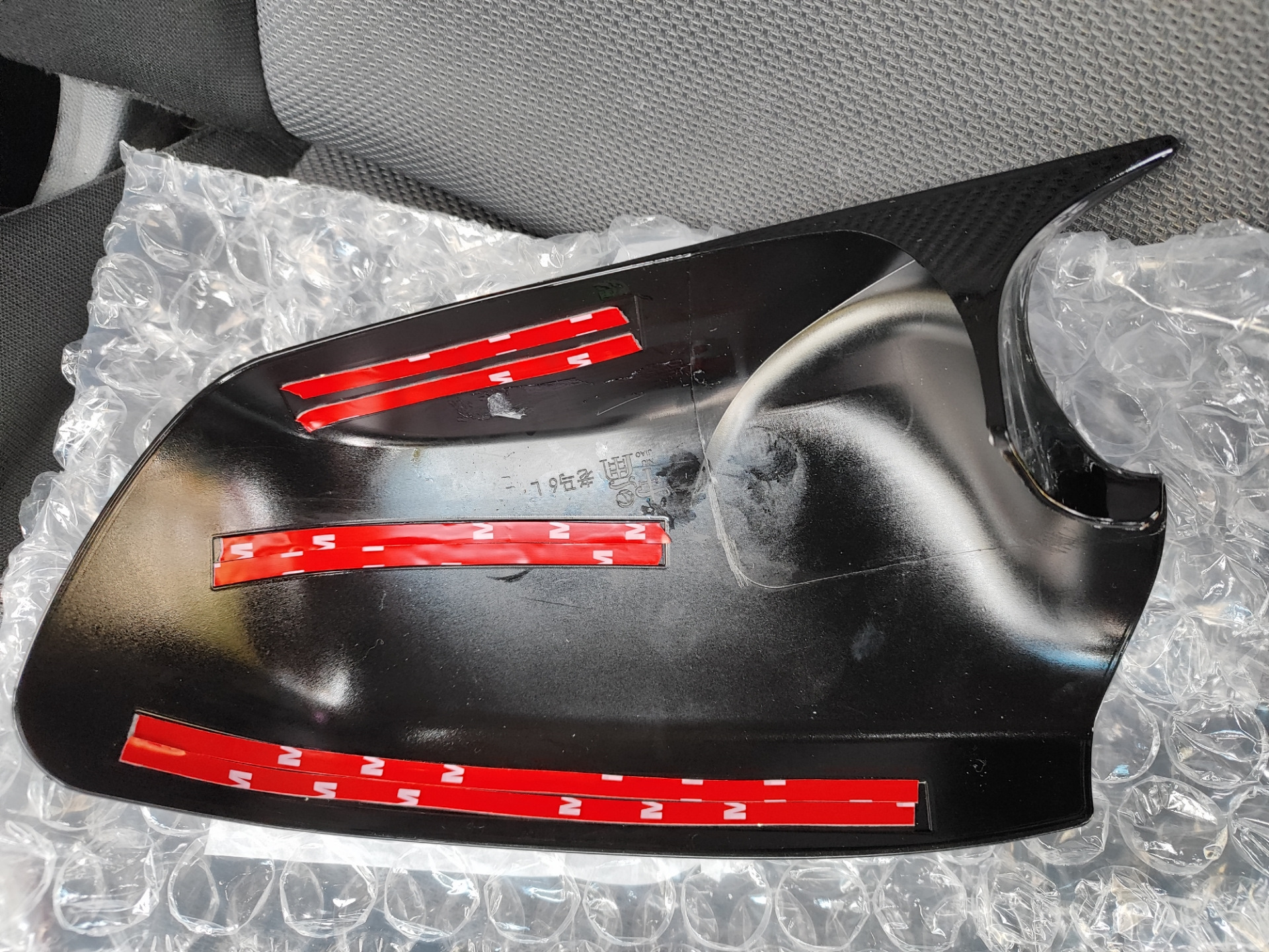 По получению оценил товар и пришлось открыть спор на возврат части денежных средств из-за качества (дальше смотреть фото). Спор успешно был выигран и достаточно приятно иметь накладки на боковые зеркала примерно за 1500р💰.