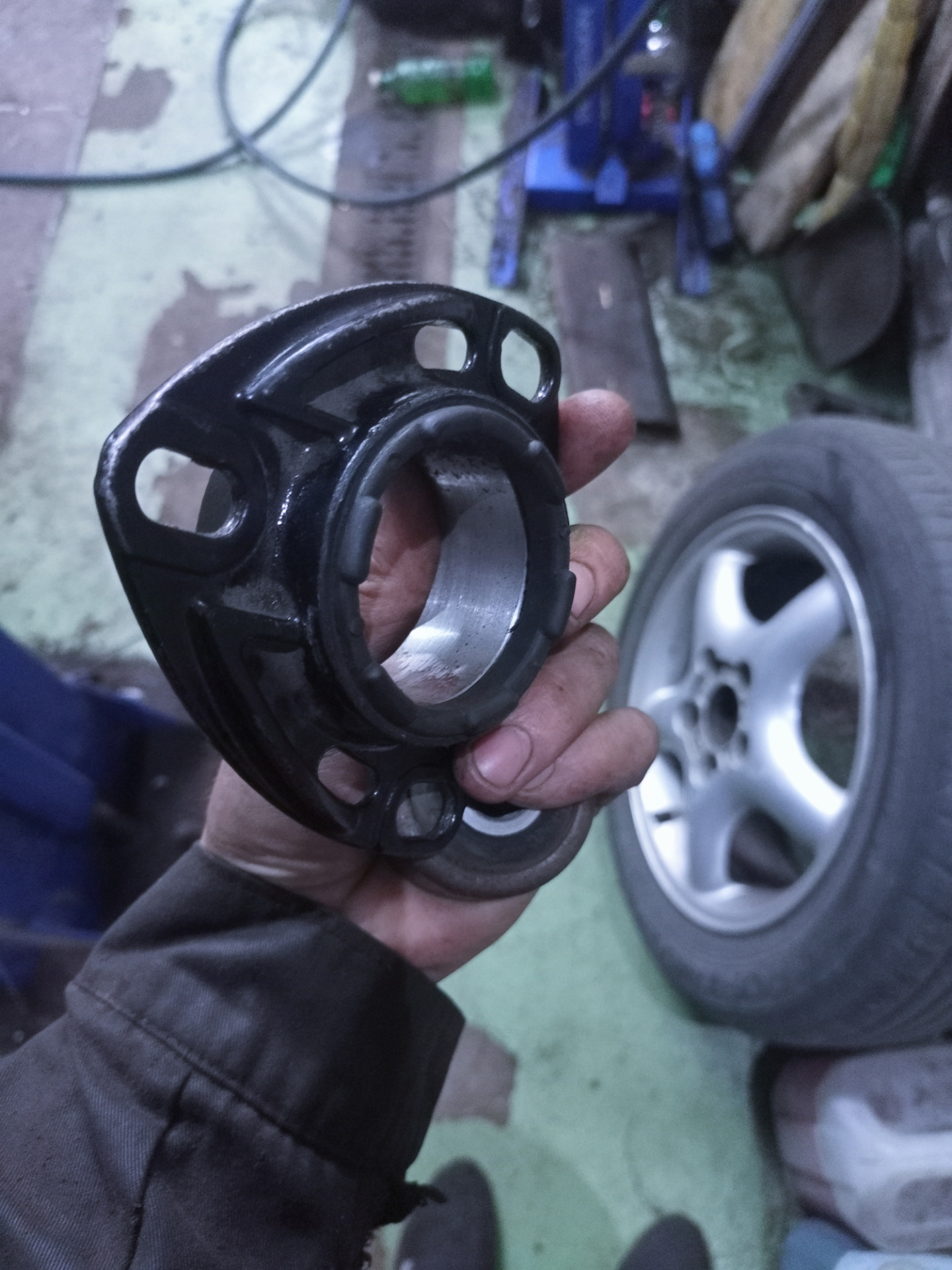 Привет народ!Устал я менять опоры стоек, ходят не долго, а так как стойки каяба то умирают гораздо быстрее чем на масляных.Вырезал из корпуса старой опоры остатки резины, выточил втулку, запрессовал ее в корпус и обварил.Далее взял сайлентблок переднего рычага, а так как это эксперимент то взял бу сайлент.Расточил отверстие внутри до 17 мм, а так же срезал края втулки по 7мм с каждой стороны.Запрессовал сайлент в корпус.Вскоре установлю на авто и буду наблюдать за работой данного узла, надеюсь проходит дольше чем те что продают)))