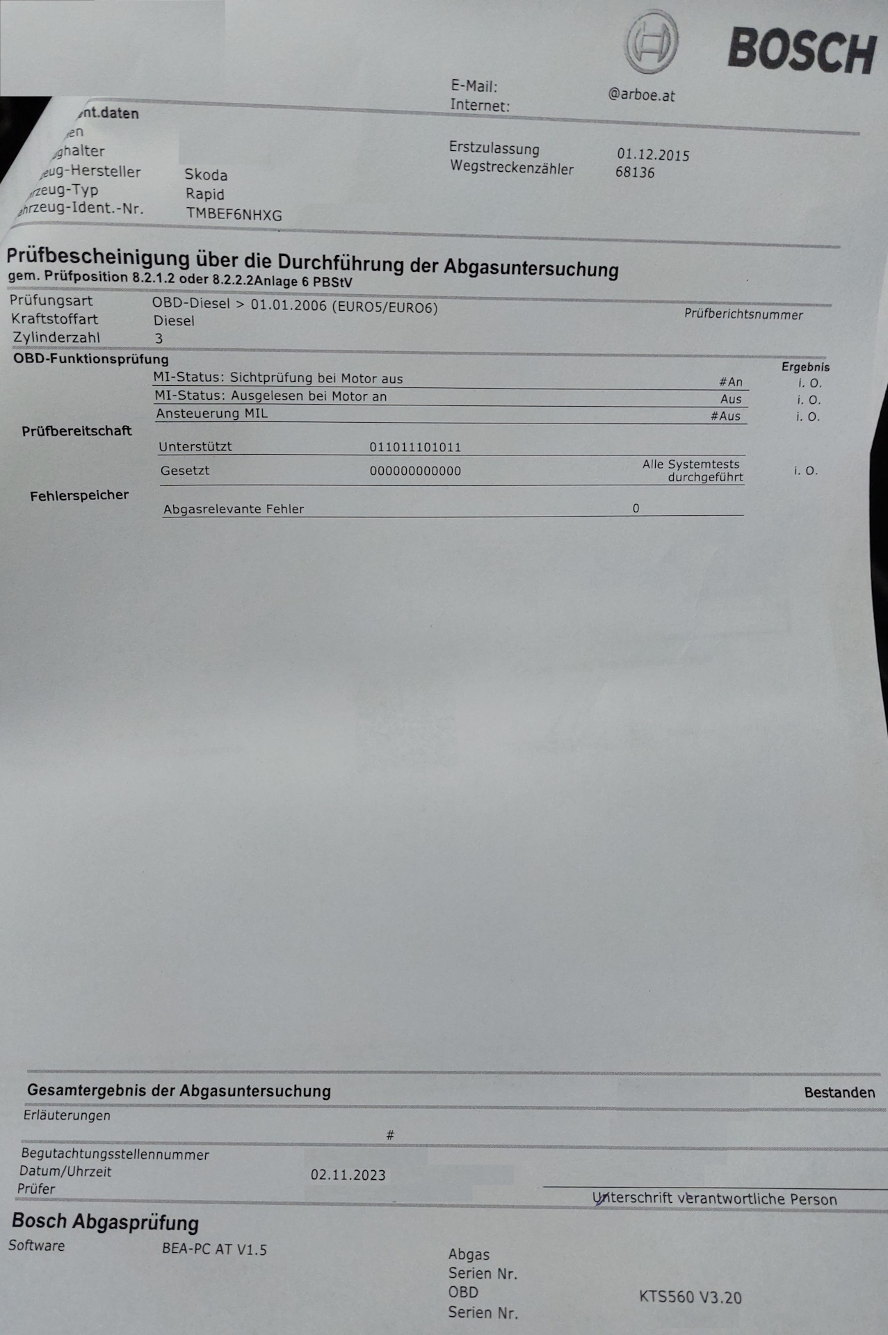 Выхлоп традиционно меряли прибором Bosch KTS560 через OBD разъем: