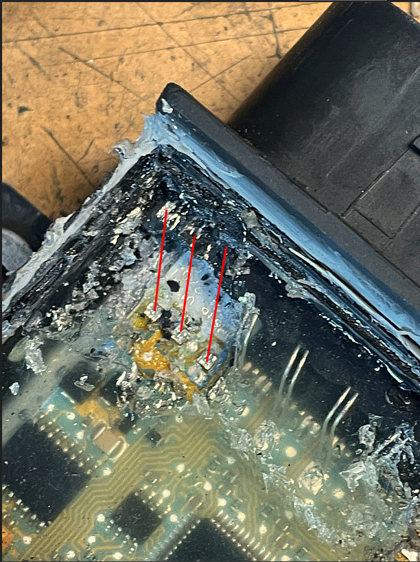 Снимаю и разбираю блок повторно. Начинаю досконально позванивать все провода и замечаю, что все провода на свечи живы, но 1 из 3 крайних левых не прозванивается к внешнему контакту.