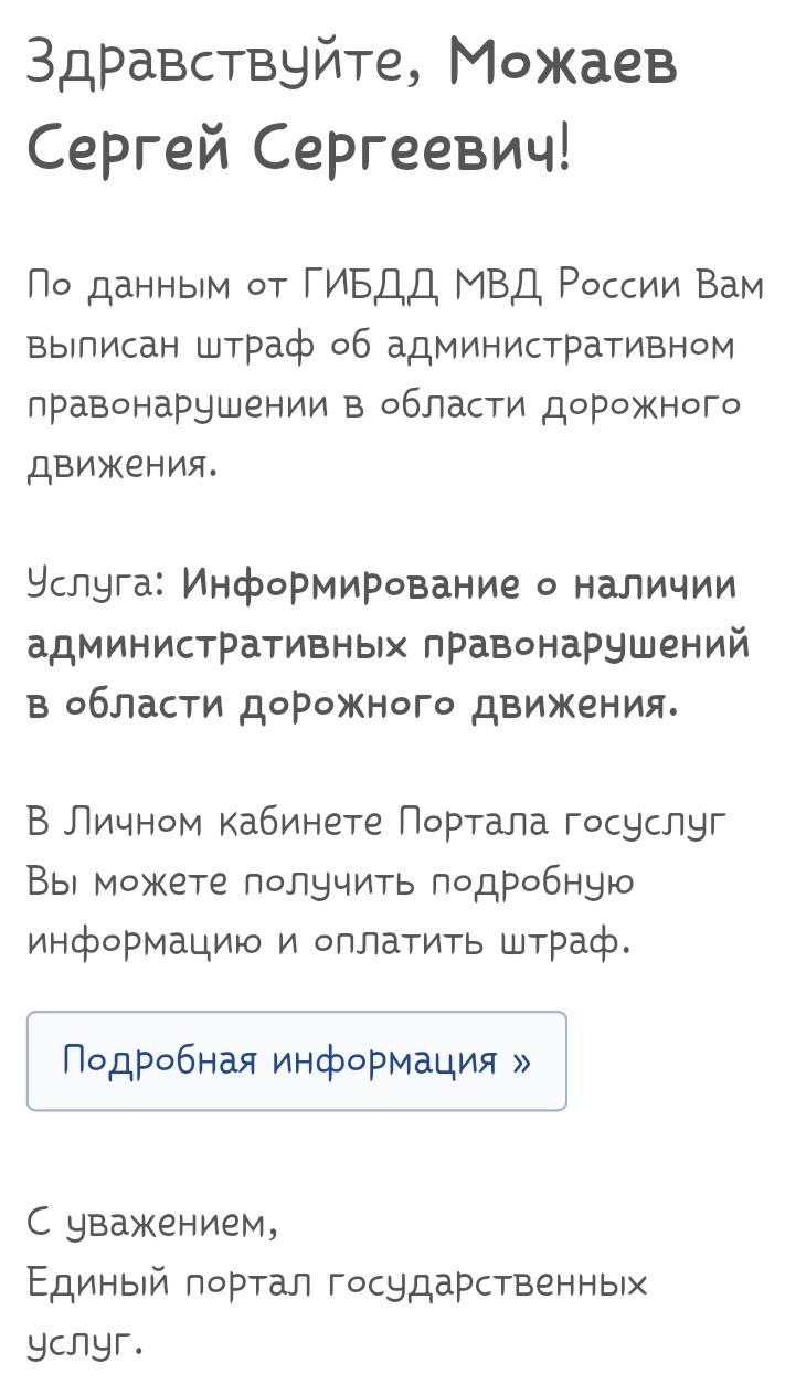 Следом по почте пришло письмо от портала ГОСУСЛУГ.