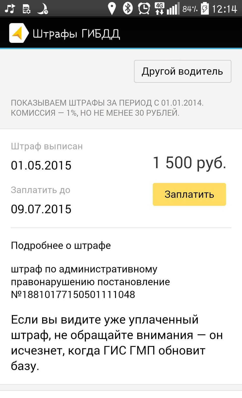 После далекой поездки (в Казань) обязательно ждешь письма счастья. Хорошо когда они прилетят не к тебе. Но 7 мая пришло SMS о наличии у меня нового штрафа, который был выписан 01 мая 2015г. Думал, что за нарушение скоростного режима когда ехал в Казань.