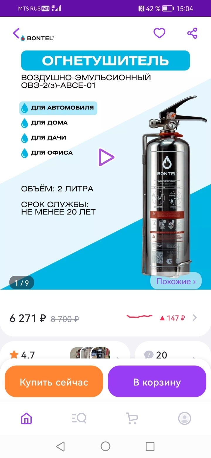 За эту цену можно было 3 таких таблетки купить и разложить в разные места автомобиля. Данная таблетка автоматически взрывается и засыпает большим количеством порошка, при срабатывании. Мнгновенное тушение. Срабатывает от открытого огня. Многие кладут её под капот и в салон. Она может потушить пожар, даже если владельца нет рядом. Производство Россия.