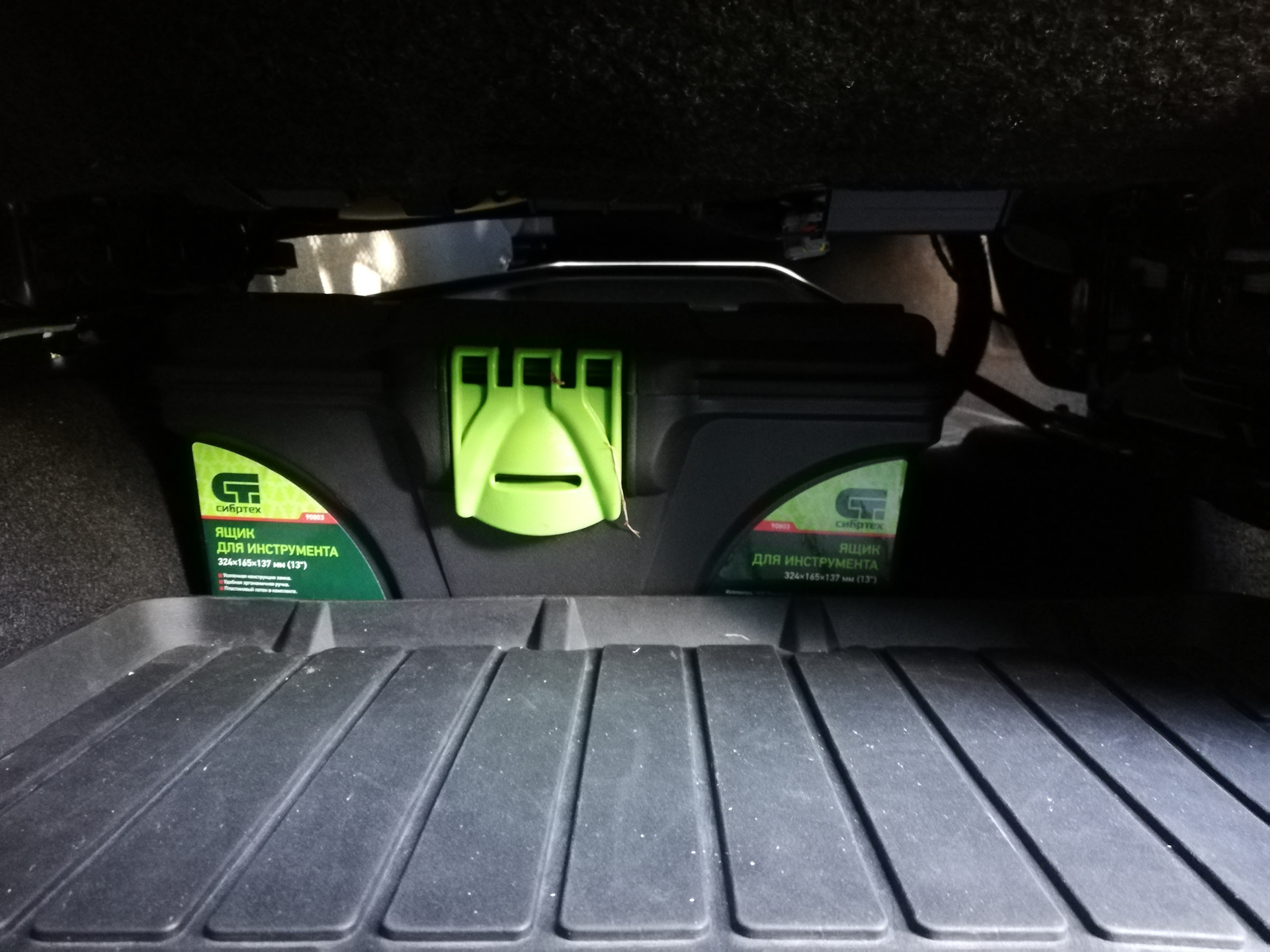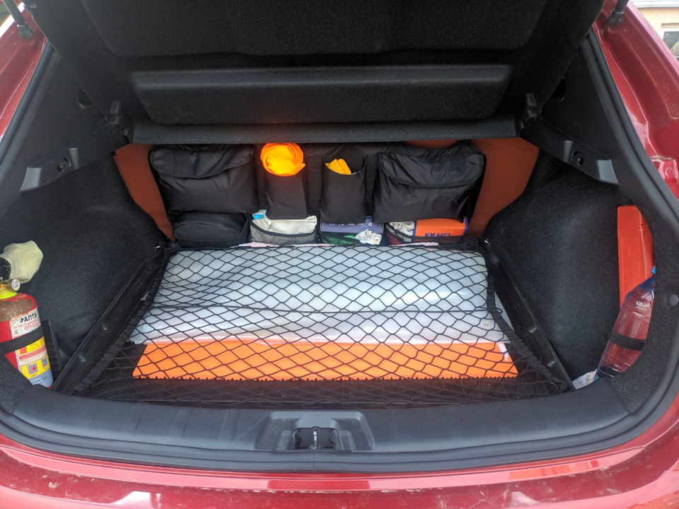 Дальше место размещения, слева в багажнике есть удобная ниша, туда даже 5-ти литровый огнетушитель становится отлично, вроде как самое то, но у меня то место занято, живёт там походный чайник, тоже хорошее место для него, чтобы не летал и не дребезжал по багажнику.