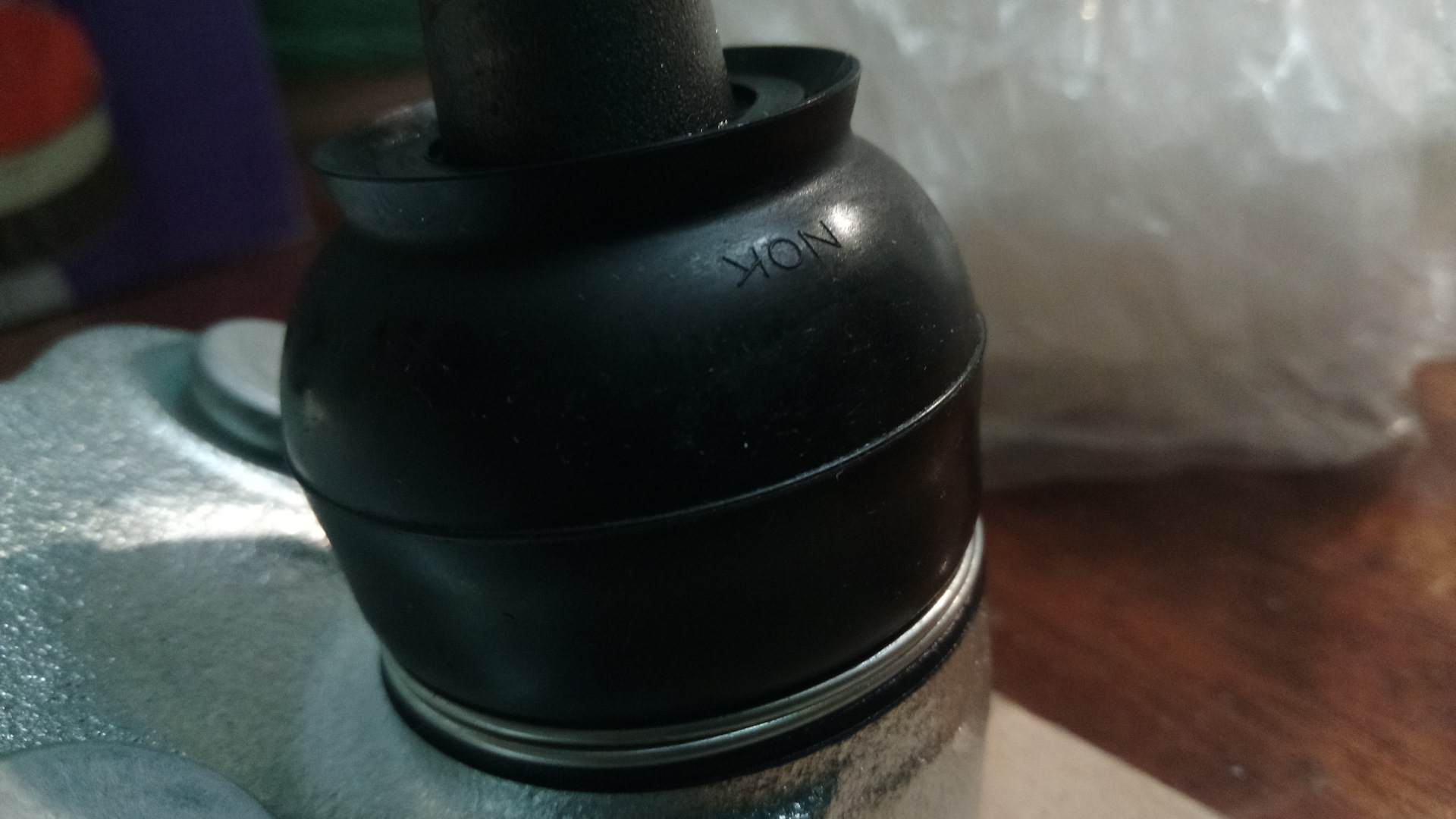 Вот так выглядит оригинальная шаровая, на пыльнике ничего кроме NОК нет.