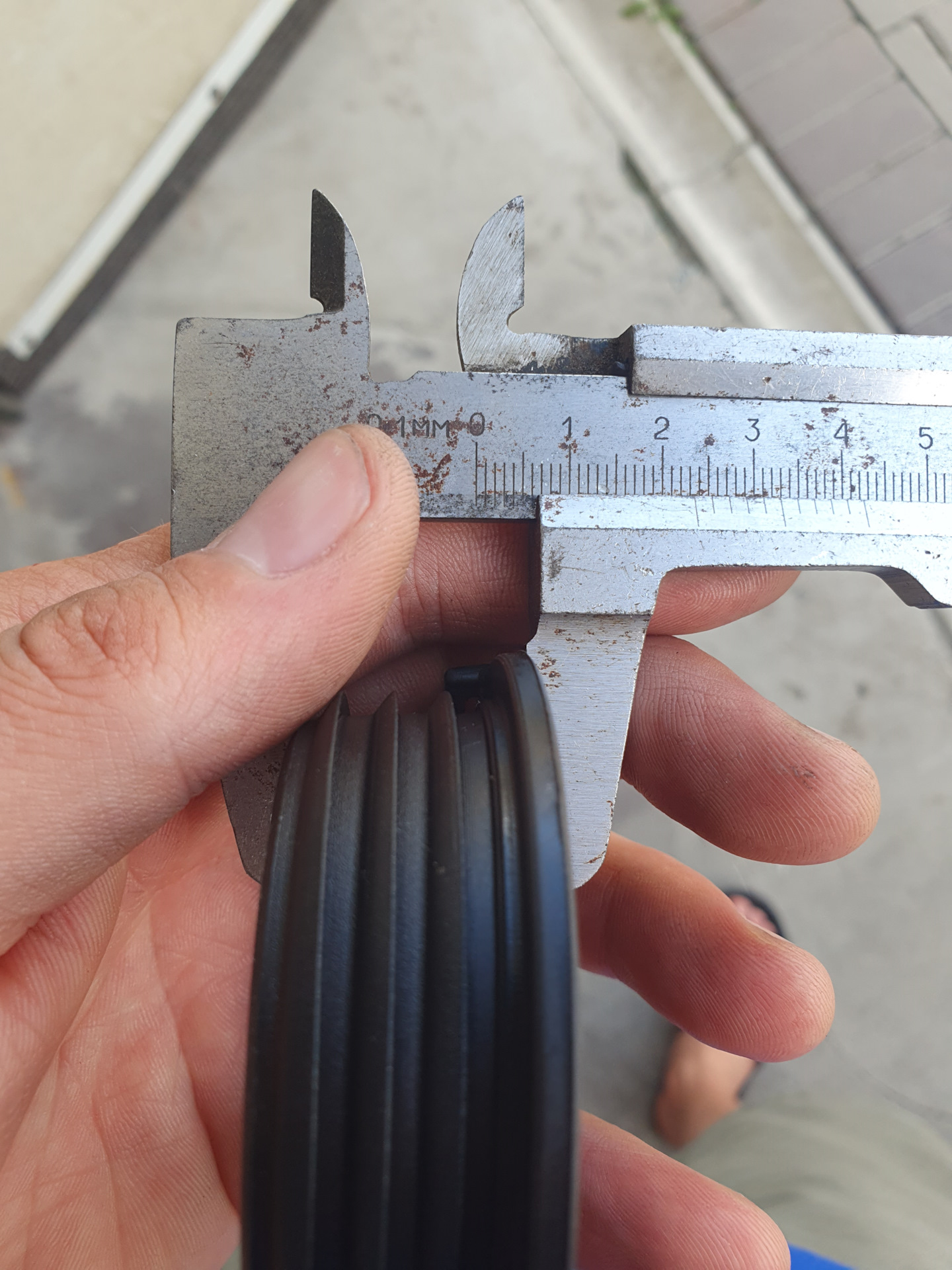 Решил попробовать между рёбрами в этом уплотнителе вставить резиновое колечко- и тут не смог найти нужный диаметр и толщину кольца. Вот размеры этого уплотнителя.