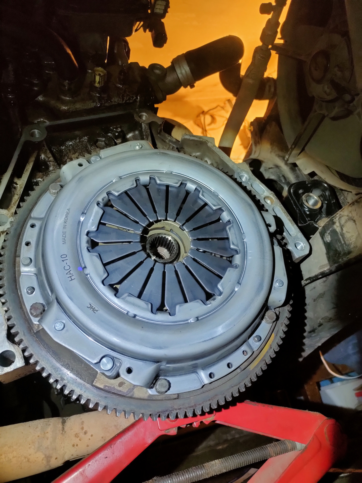 Наконец, удалось выделить несколько дней и поменять комплект сцепления: диск, корзина, выжимной. Мероприятие это отнимает много сил и времени. 4 дня после работы провел в гараже и одна полная суббота.