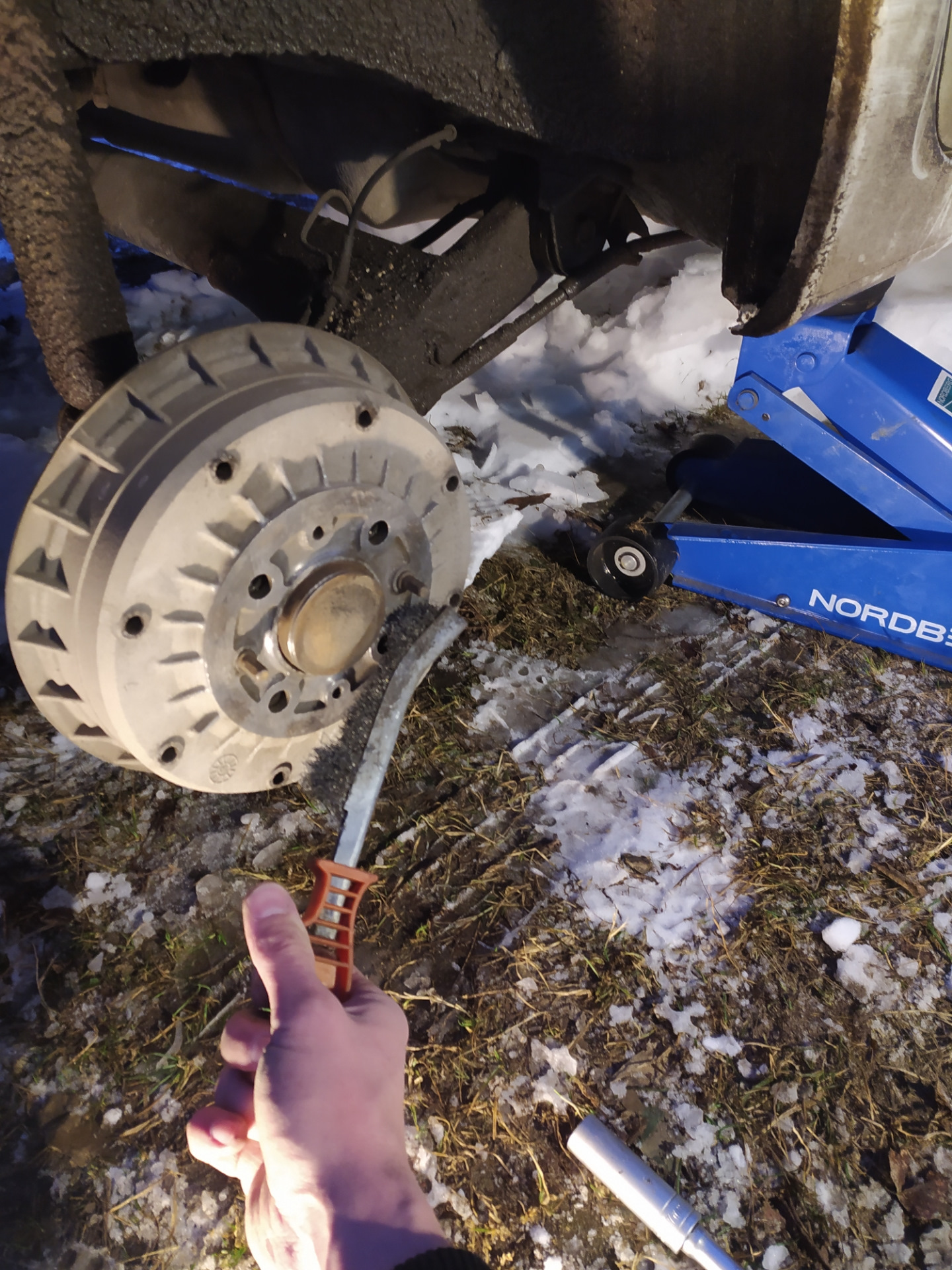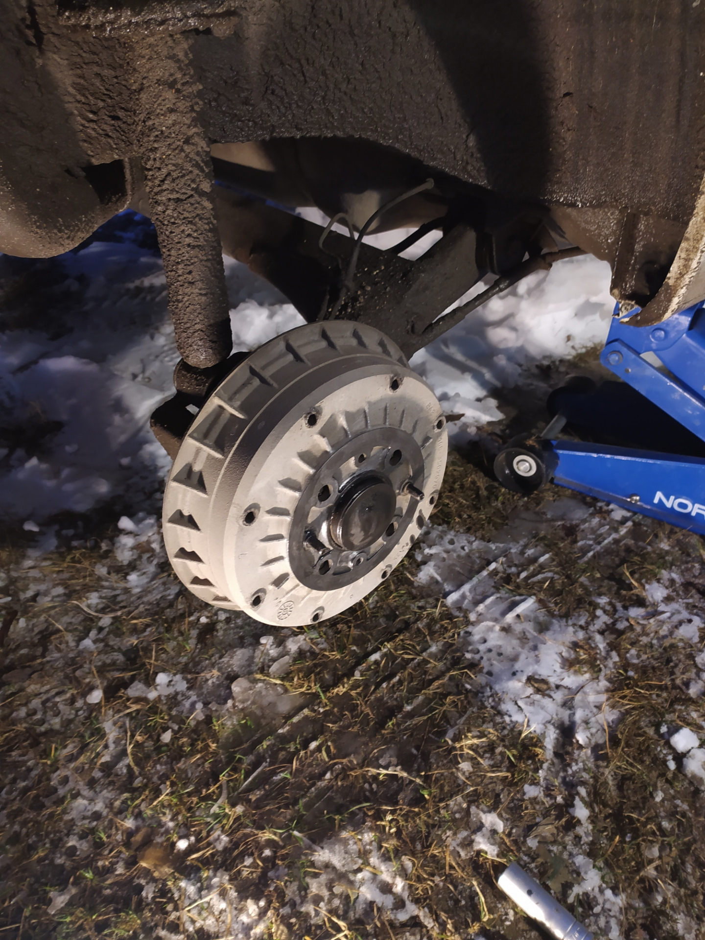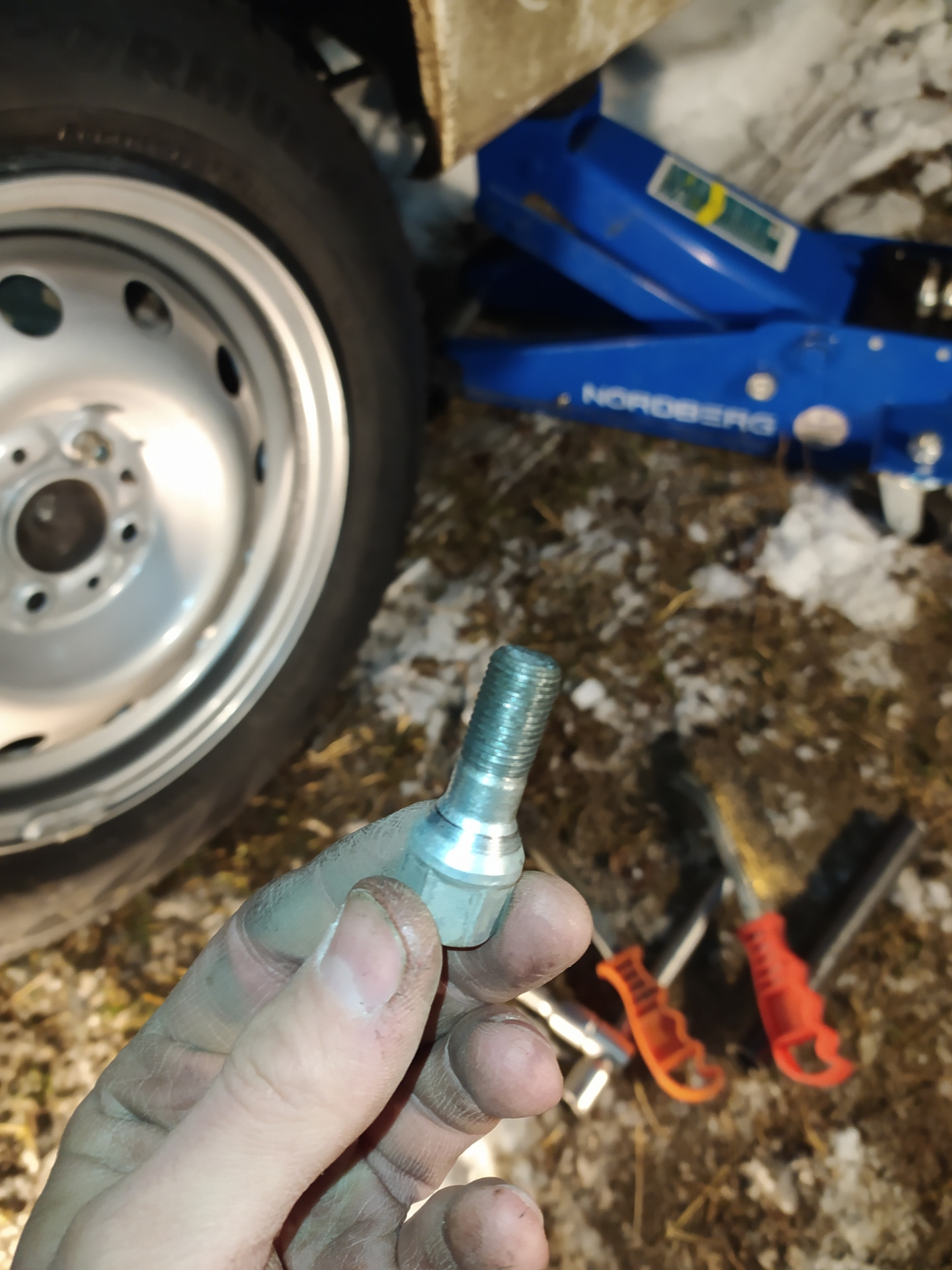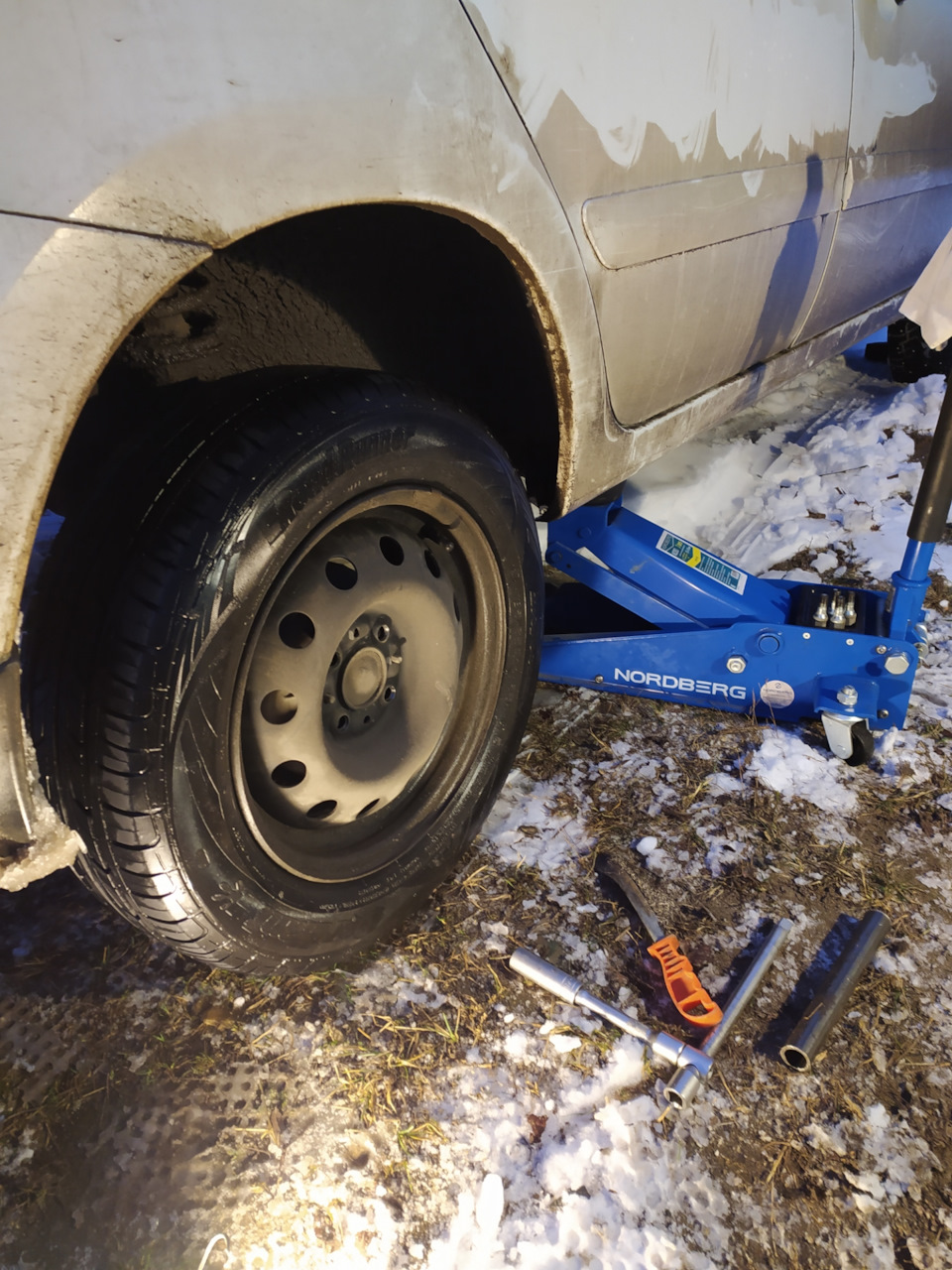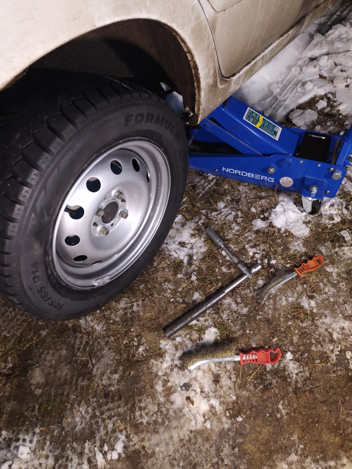 Вчера у нас выпало приличное количество снега, с утра на машине было около 20см соответственно на дорогах тоже не мало, пора менять резину на зимнюю. Передок я переобул ещё неделю назад, а задание поставил вчера.