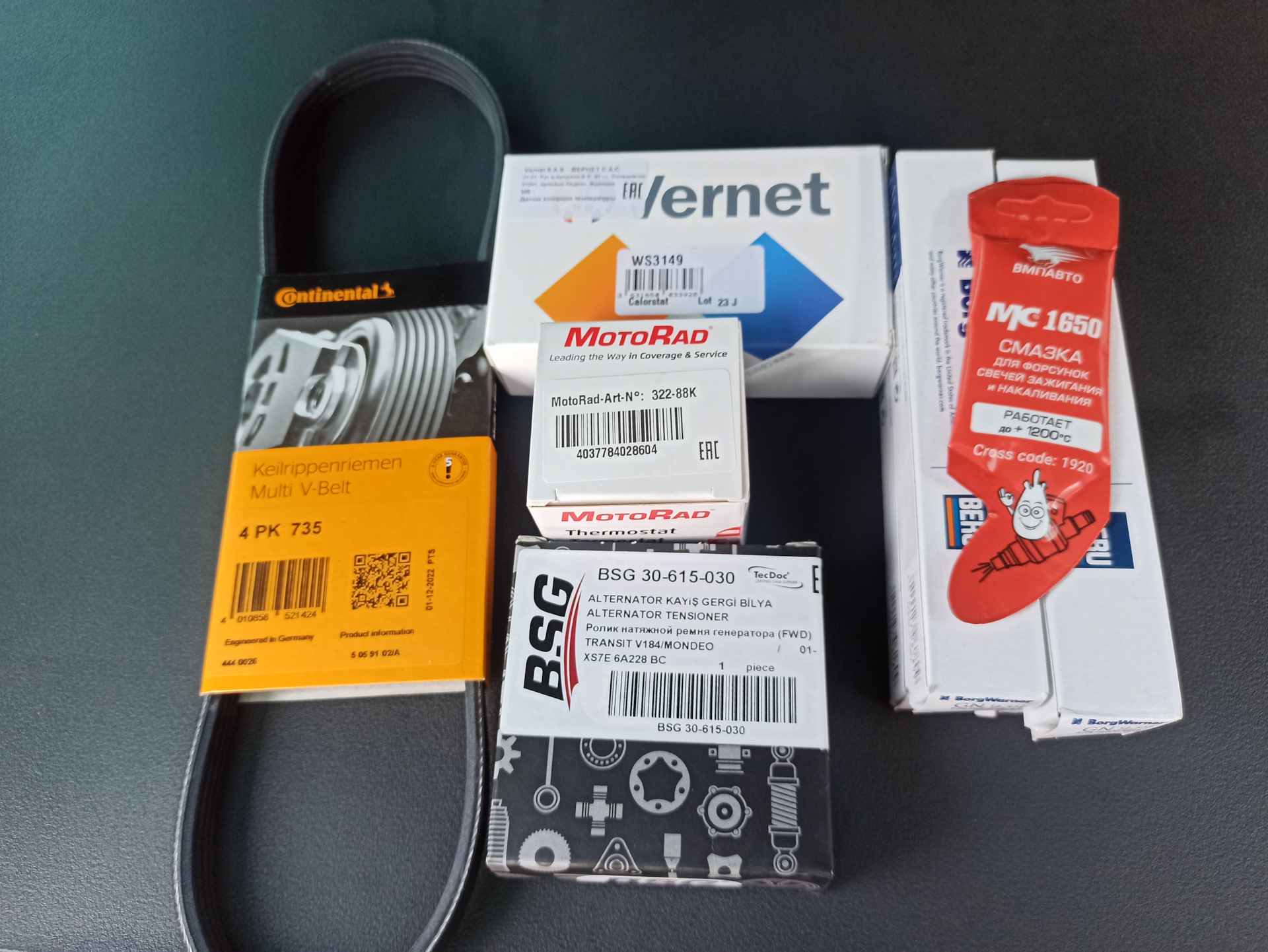 Перед зимой в любом случае хотел поменять свечки на новые. А тут, с приходом холодов, машина перестала греться. На форуме сказали, что всему виной малый термостат. Начал поиски, в продаже есть только транзитовские, которые не совсем то, что нужно, и нужный, но только в оригинале. На помощь пришел Виктор vitja090191, который продал мне тот самый термос за адекватный прайс. Докупил ещё основной термостат, датчик температуры ОЖ, новый ремень ГУР и ролик его натяжителя (их всё равно нужно снимать для замены датчика, почему бы не поменять но новое), свечки, банку антифриза и загнал на ту же станцию. Очень боялся, что свечи не открутятся, но пронесло, всё прошло гладко. И каково было моё удивление, когда с утра, при запуске авто, я не обнаружил того самого дыма. Кажется, мелочь, а двигатель стал работать сильно мягче.