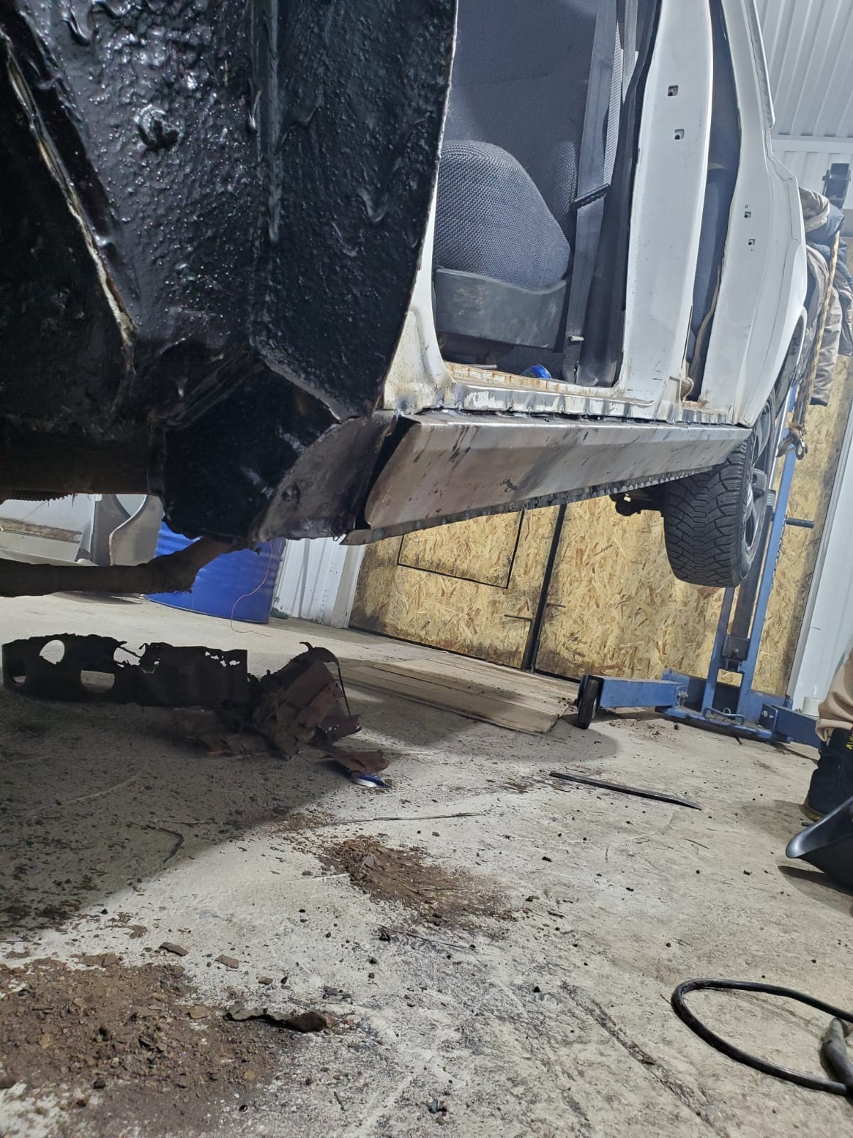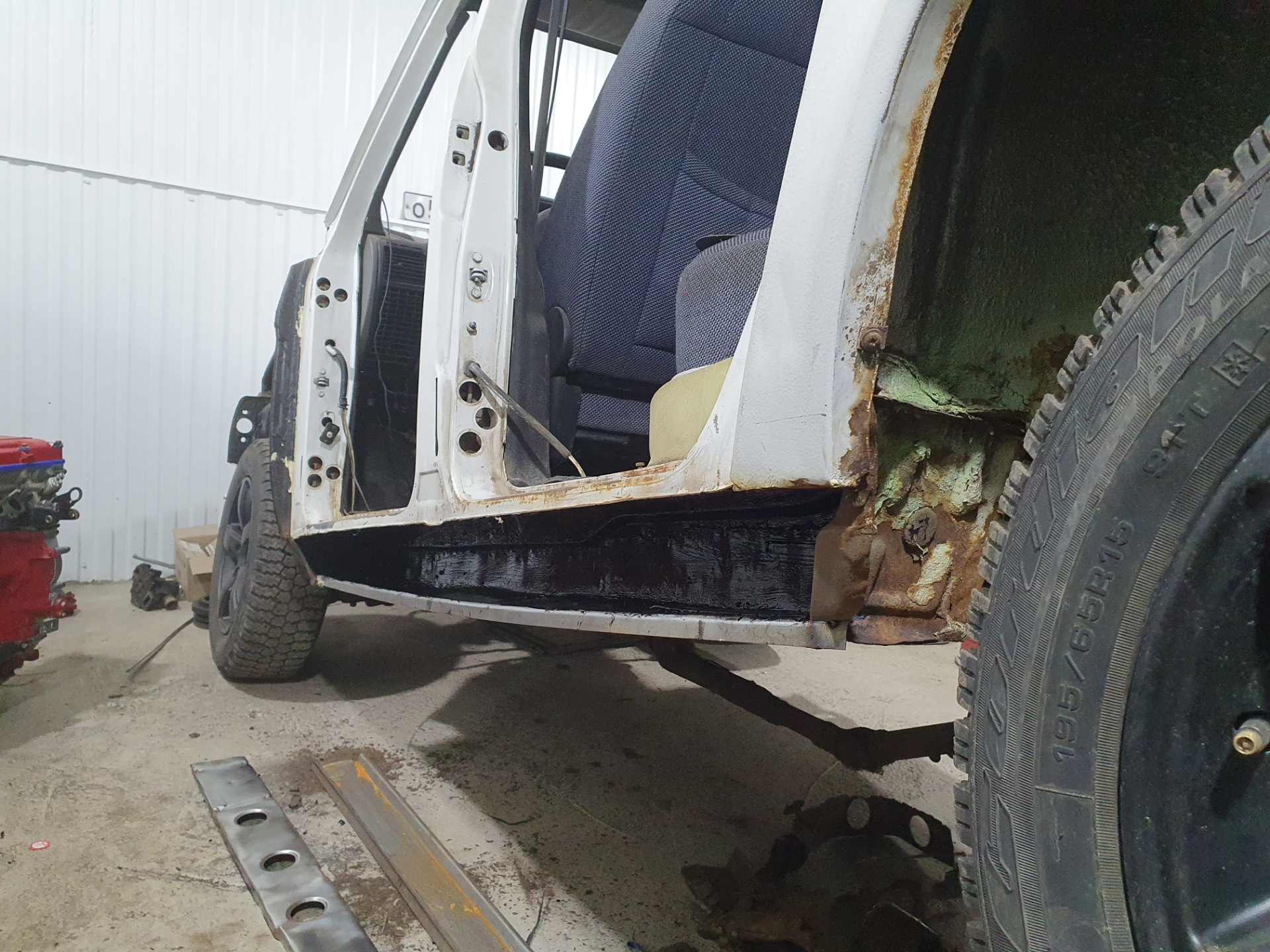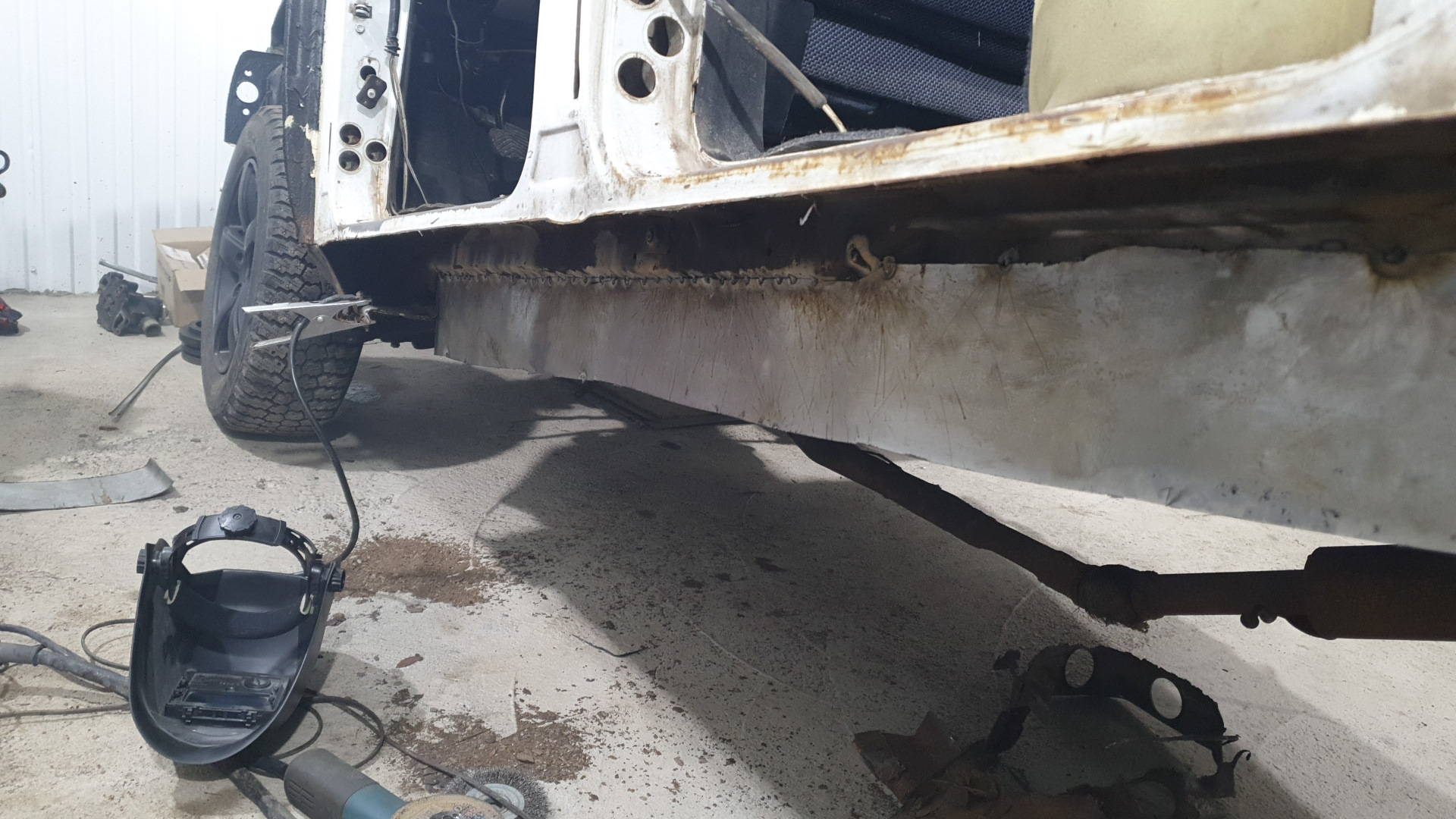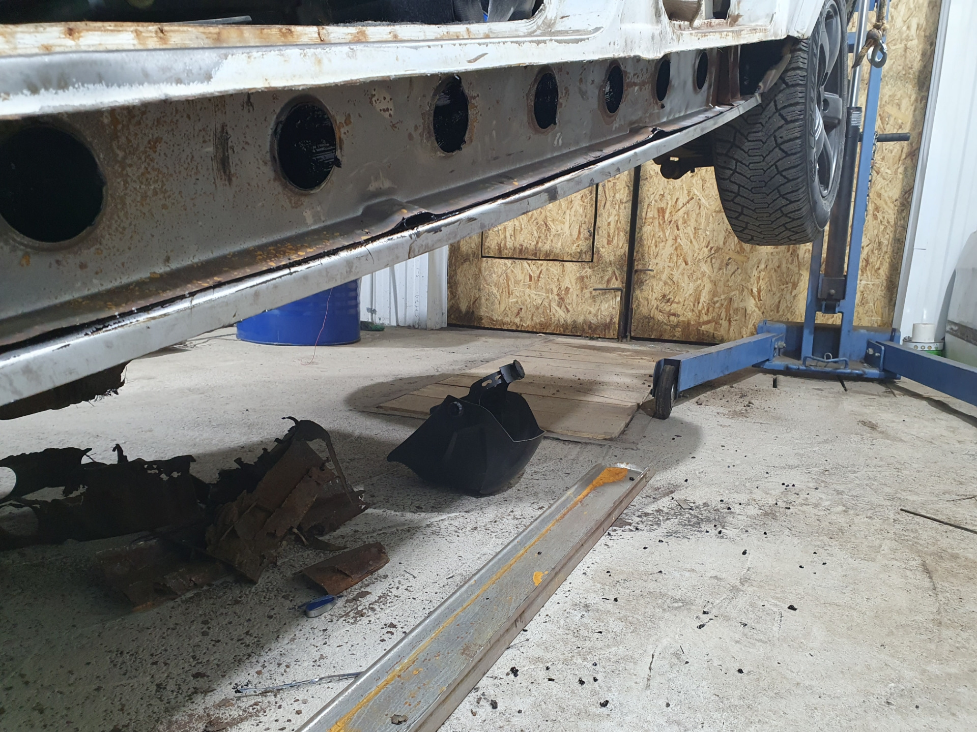 Варю пороги в первый раз, высверливать точки сварки не стал, срезал всю гниль. И тут понимаю что низ короба в печальном состоянии. Срезал всю ржу и гниль, стал варить короб