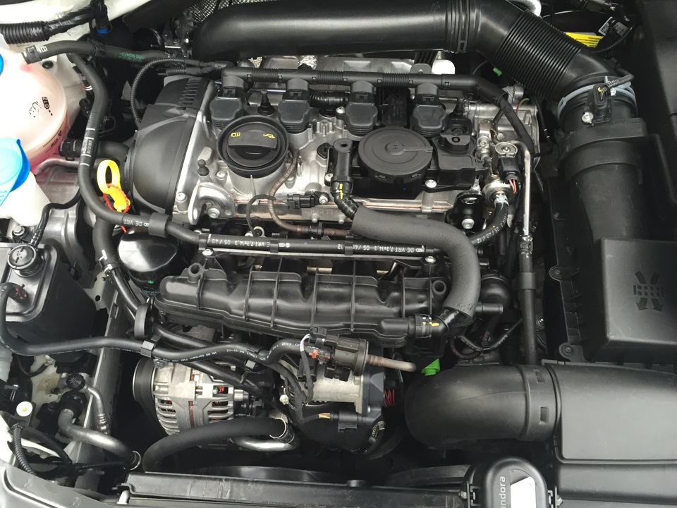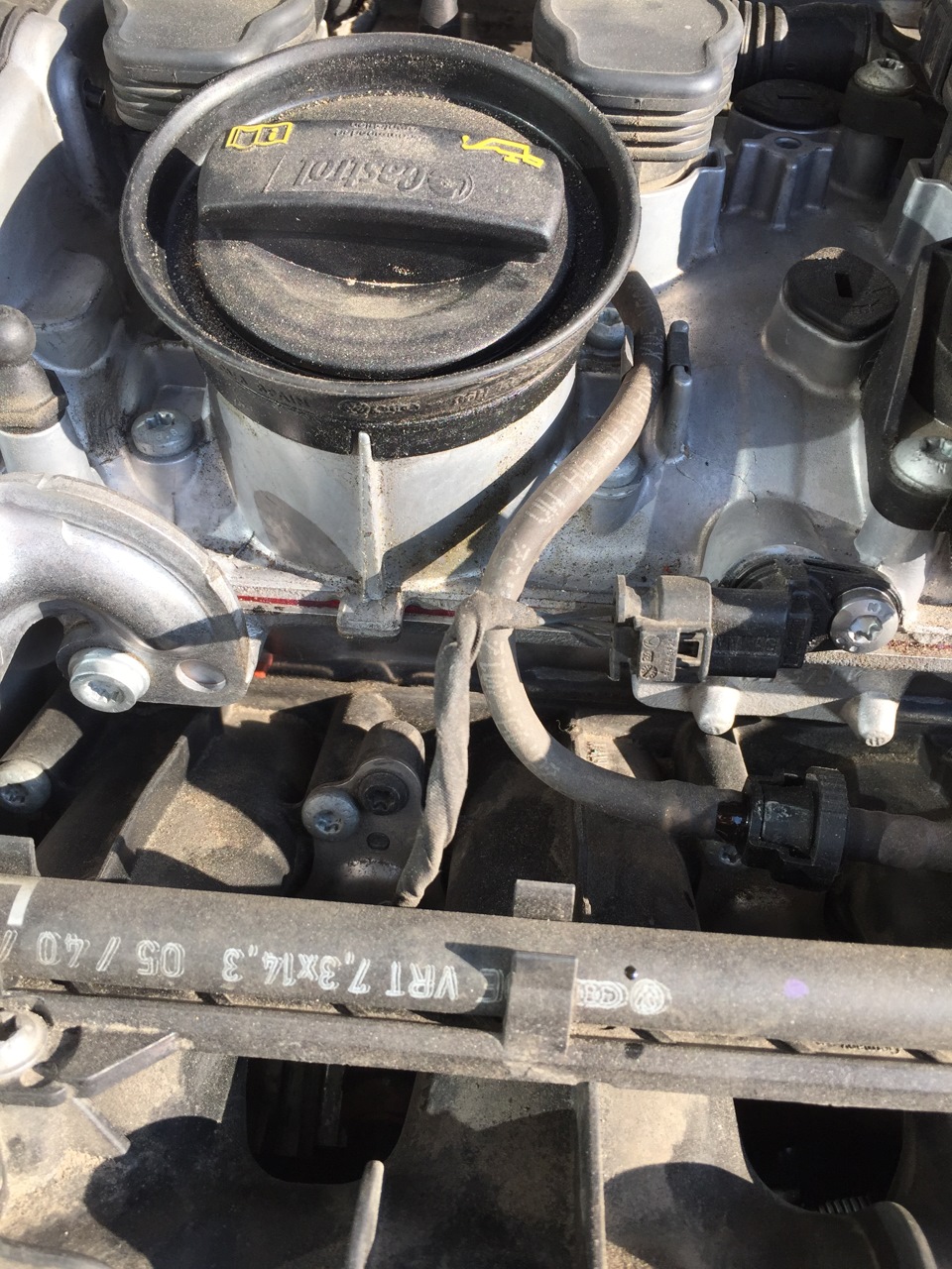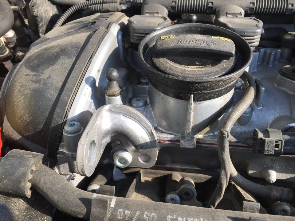 Upd. 14.05.2015 Посетил дилера и тот осмотрев двигатель отправил его помыть и потом уже смотреть где будет пасло, так как возможно запотевания связаны с неаккуратностью мастеров, которые могли просто все заляпать. Маслоотделитель стоит мой родной со старого двигателя ревизии E, на вопрос по поводу решения проблемы с его запотеванием мастер сказал что можно поменять только саму прокладку (06H103484A), нашел ее в магазине — цена 887р. это в 5 раз дешевле нового маслоотделителя. Я думаю самомтоятельно я смогу ее заменить.
