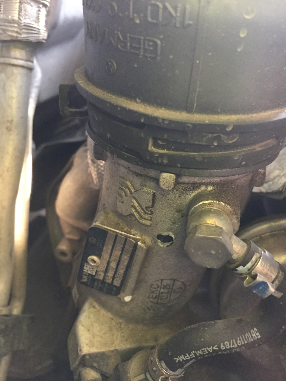 Начал потеть маслоотделитель, потеет маслозаливочная горловина, чуть потеет патрубок турбины.