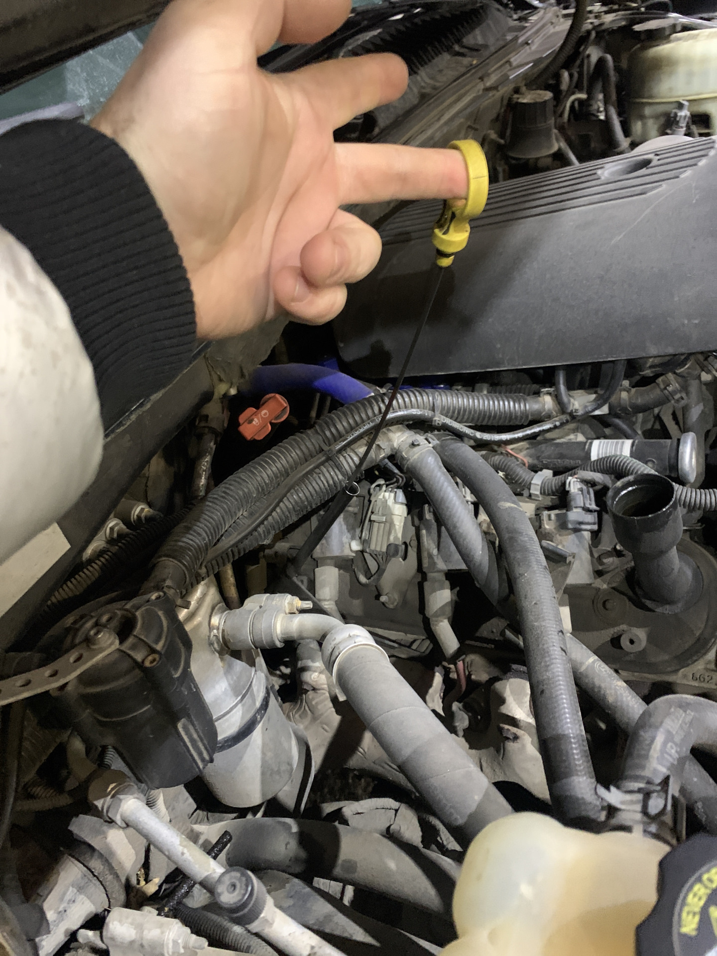 Далее как щуп показывает половина на метках, то заводим двигатель на 5-10 секунд и глушим. Снова достаем щуп и доливаем до уровня и будет вам счастье 😀