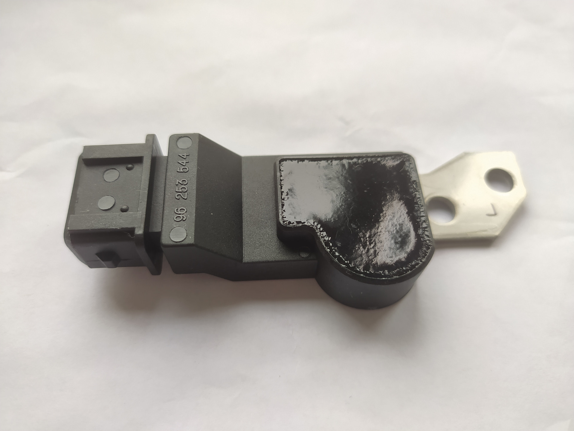 Самое главное отличие в компаунде, залитом в прямоугольно-круглую форму. Это актуально с датчиками 2019-2023 (из того, что я нашел в сети). Отличие оригинала в том, что это место является немного утопленным внутрь. НЕ выпуклым, а впуклым! Так же в оригинале присутствует заводская фишка, она заключается в том, что по краям формы, компаунд как бы с задирами, то есть по всему периметру прямоугольника и полукруга, он залит не идеально, а волнами и пупырышками. Общий вид компаунда — глянец, который так же едва с заметными неровностями. Так же, с этой стороны присутствует артикул запчасти 96 253 544, разделенный пробелами, между выпуклыми кружками на корпусе.