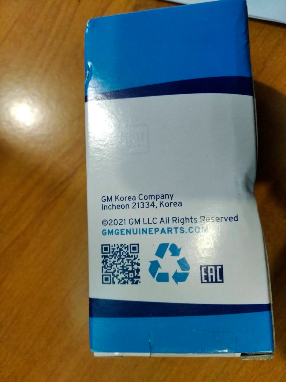Отсутствие на этикетке надписи GM Genuine Parts в связи наличием ей же на обратной стороне коробка.