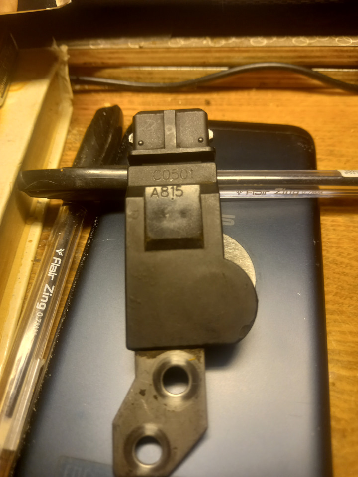 С другой стороны, обязательно наличие печати выжженых станком в двух местах буквы и цифр. В зависимости от года производства, шрифт может отличаться. Отличие шрифта не критично, главное наличие 2х надписей. Тут же мы видим явно выраженный круг на корпусе, где расположен магнит. Если провести пальцем, вы почувствуете выпуклую окружность, которая на подделках отсутствует или почти не проявляется. Пока я в гараже, в руках вертел оригинал датчика на рабочем столе, насобирал кучу металлических опилок, что говорит о бОльшей силе магнита внутри корпуса в сравнении с моим умирающем старцем.