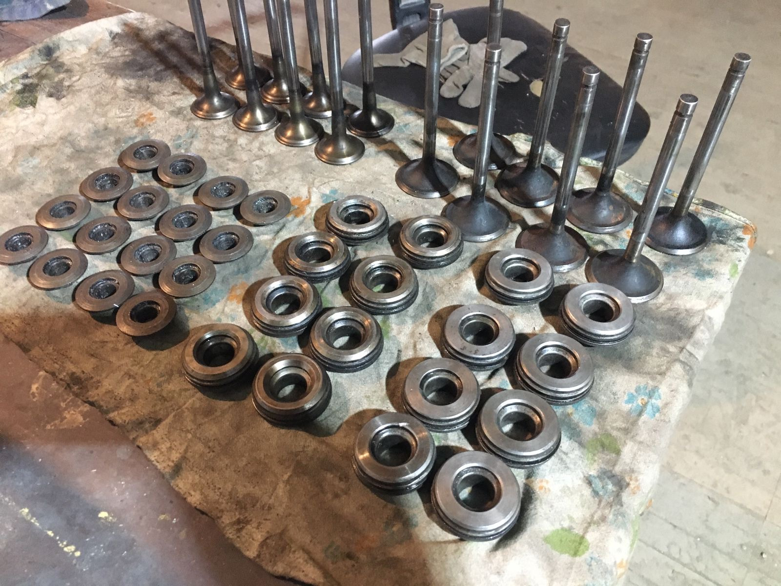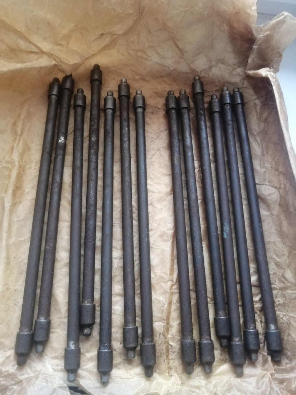 А требовалось собрать комплект одинаковых, желательно новых. Это тоже оказалось невыполнимой задачей. Нет больше новых клапанов на газ-14 :-(. Два месяца поисков не дали результатов. Было принято решение искать бэушные. И, благодаря моему другу Семену из Нижневартовска semenkudrya большому фанату больших отечественных v-8, клапана были найдены в… Смоленске. Полный комплект с пружинами, штангами и вращателями.