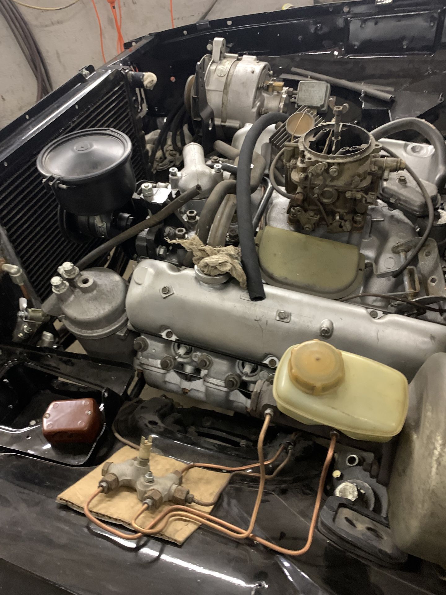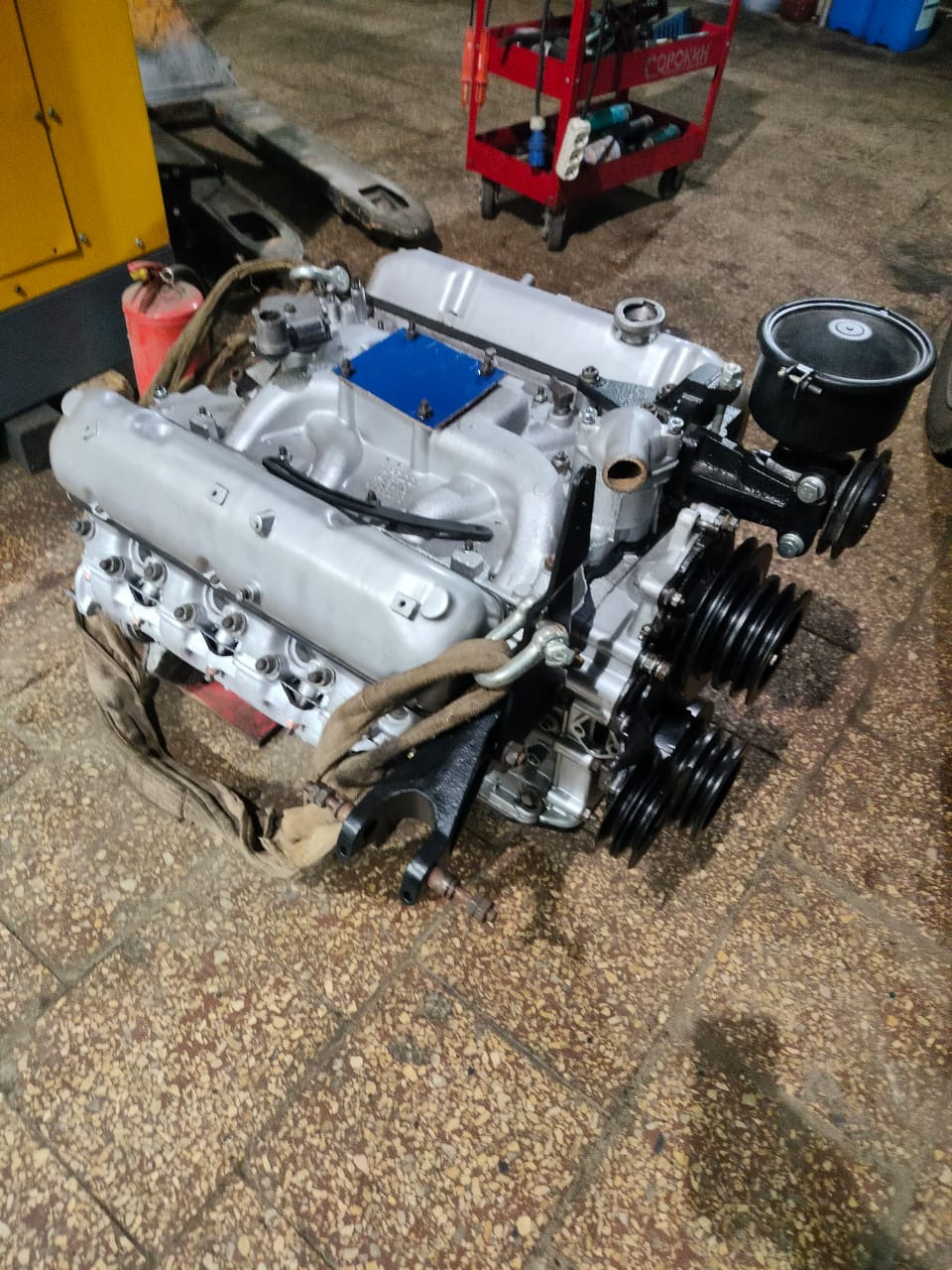 Также было отремонтировано все навесное:стартер, генератор и помпа, корпус которой отличается от газ-53 :-). Трамблер будет новым от газ-13, а оригинальный насос ГУР я решил не ремонтировать, а купить гибрид современного насоса от змз-402 и бачка от заз-13. Выглядит аутентично.