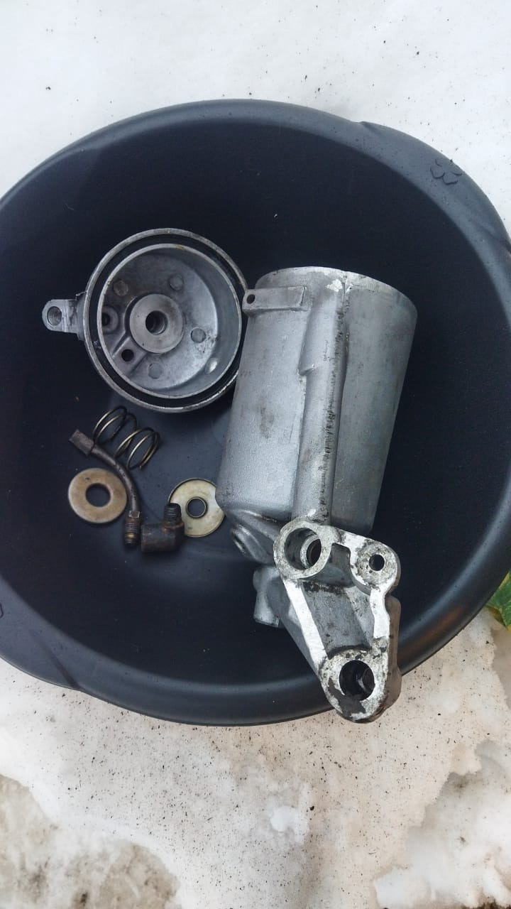 Найти оригинальный фильтр оказалось еще тем квестом. На авито сейчас продается такая деталь за 30.000 руб, продается давно, но уж больно жаба душила. Три года поисков ничего не дали. У известных на рынке ретро запчастей товарищей такой детали не было. А те немногие, кто такие моторы продавал, разукомплектовывать их не хотели. Удача пришла год назад. Увидев на том же авито объявление уже не помню чего от догонялки, я позвонил владельцу, разговорились и оказалось, что в свое время он разобрал газ-31013. Оказалось, что у него остались опоры двигателя, кронштейны, корпус воздушного фильтра и … фильтр масляный, хоть и разобранный и разукомплектованный валялся где то в углу гаража.