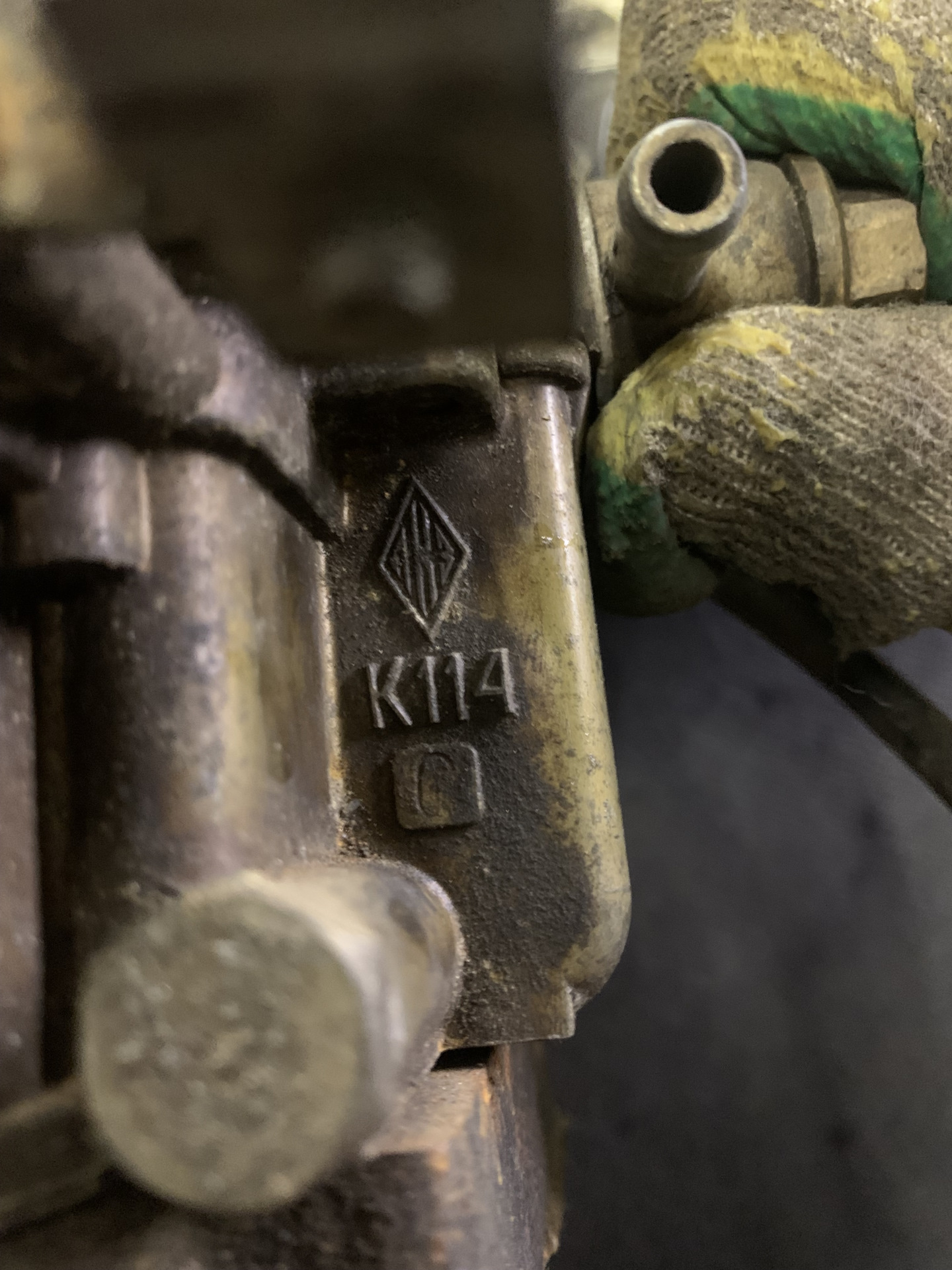 И еще одно отличие, о котором я узнал буквально на прошлой неделе. Карбюратор на змз-505 свой собственный! Обычный Чайковский к-114 не садится на посадочные места паука, а имеет иные размеры. Протерев площадку с маркировкой, обнаружил, что это К-114С. Отличается от К-114 нижней оригинальной чугунной частью
