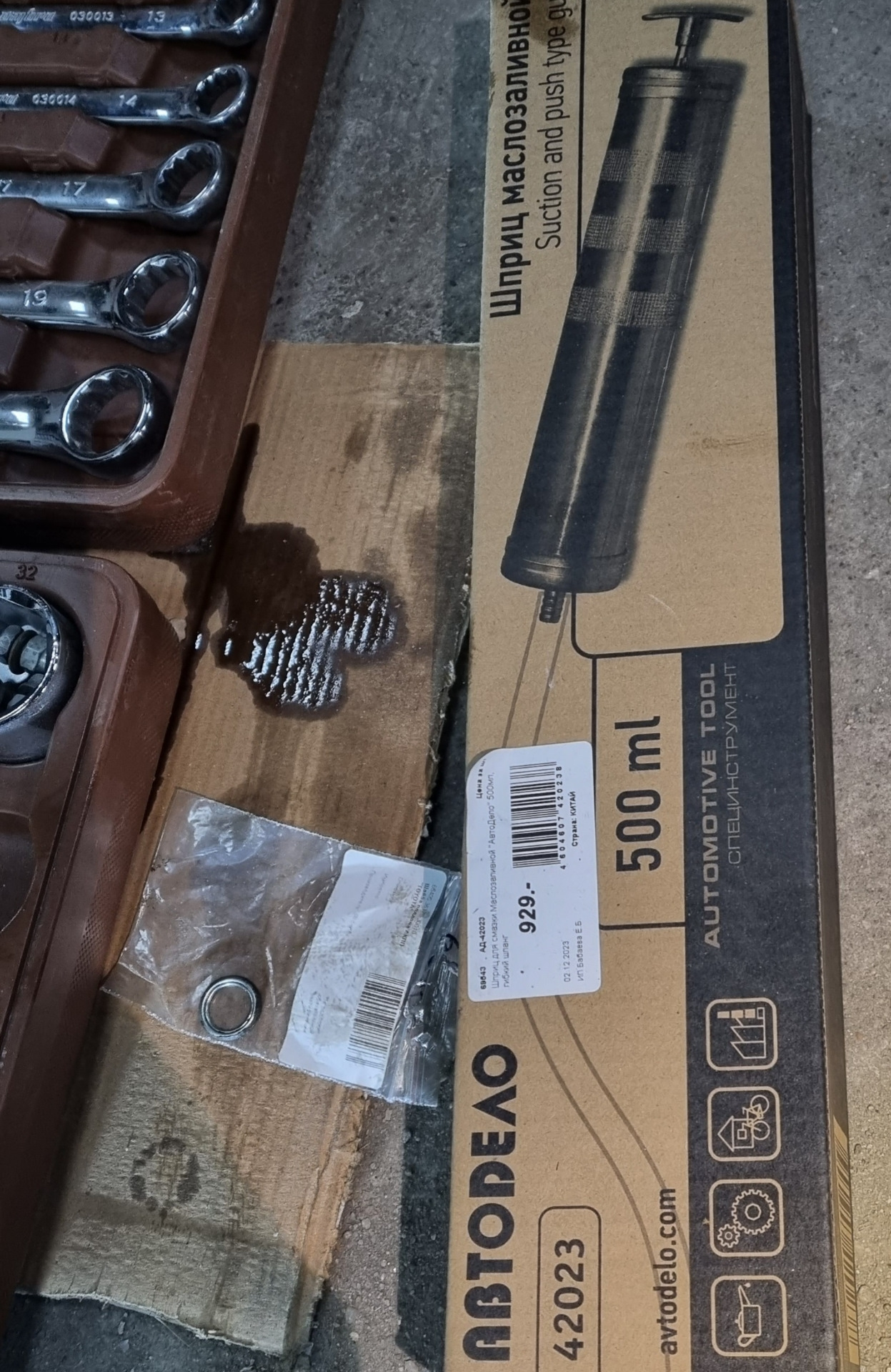 Для заливки масла был куплен шприц на 0.5л.
