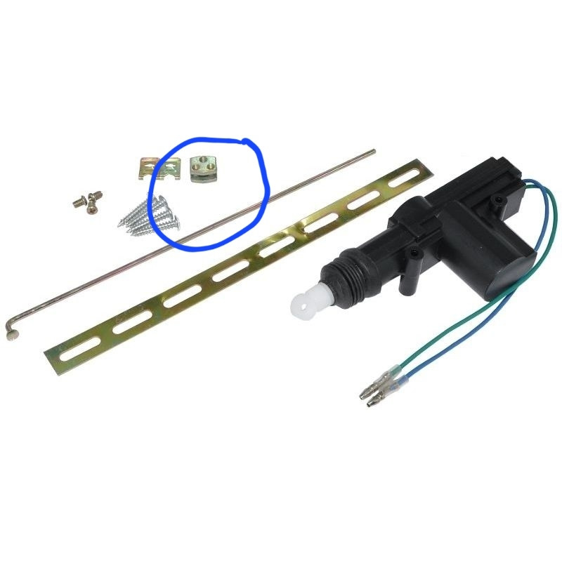 Тяги которая шла в комплекте недостаточно, но я покупал 3 активатора, 2 в задние двери и 1 на багажник.Вот 1 лишнюю тягу я поделил на двое согнул один конец нужным мне изгибом и установил ее в белую пластмаску к которой идут тяги и тросы.Далее соединил тягу от активатора и тягу от замка направляющей тяг которая идет в комплекте с активатором.С одной стороны она фиксирует тягу двумя болтами, а другую тягу одним болтом.С помощью неё можно регулировать длинну тяги, что очень удобно.