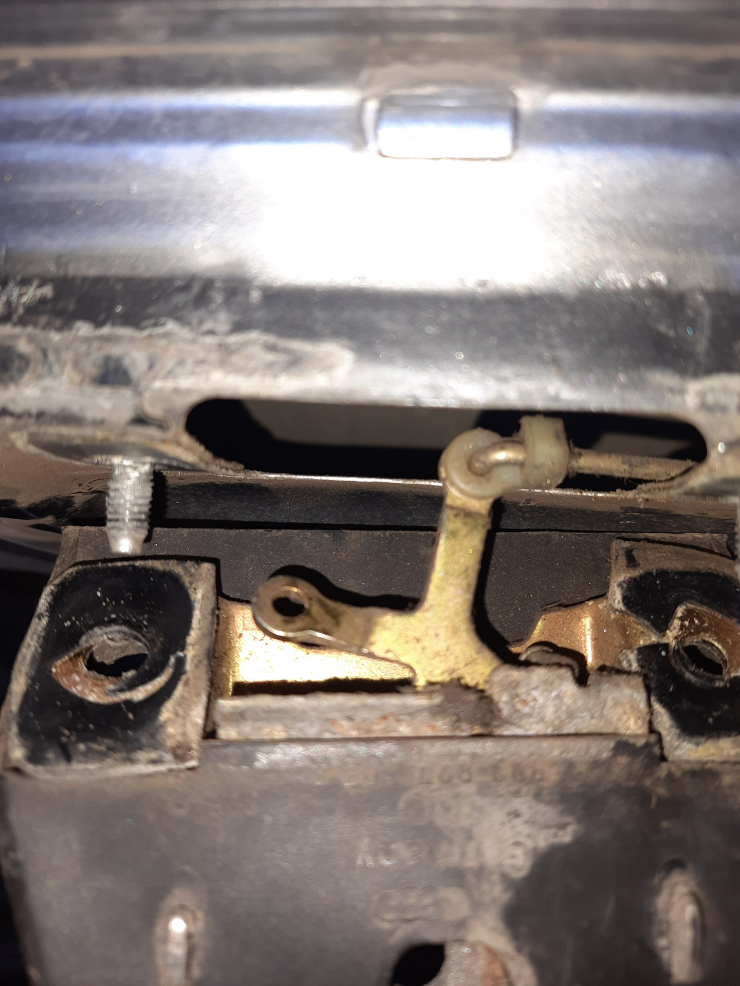 Далее померил необходимую длину тяги.Саму тягу нашел у тестя в гараже от датчика уровня топлива ВАЗ.Снова все открутил и прикрепил тягу необходимой мне длины к активатору.