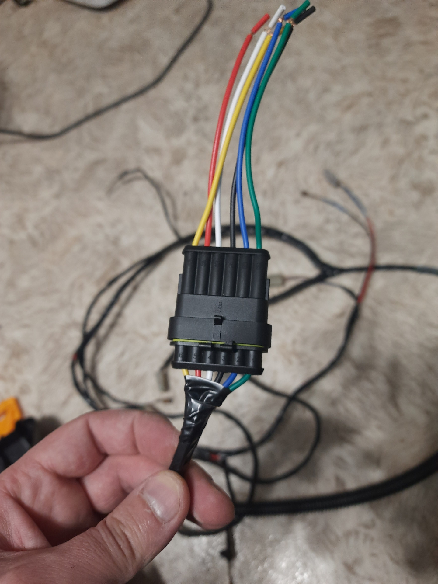 Затем на листочек переписал оригинальную распиновку по цветам проводов и начал подпаиваться к купленному разъему.Каждый провод проверял мультиметром дабы не ошибиться.