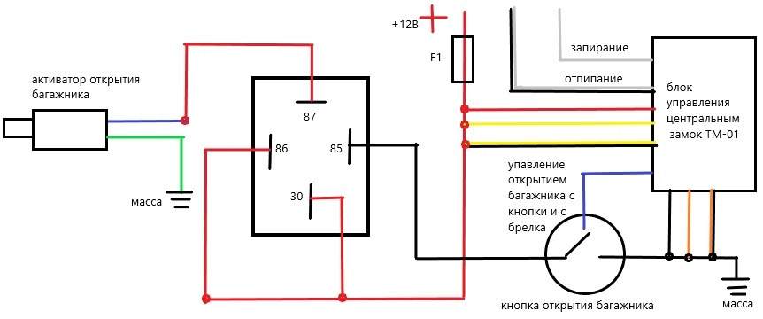 Тем более в разъеме есть свободный четвертый пин, как раз для открытия багажника