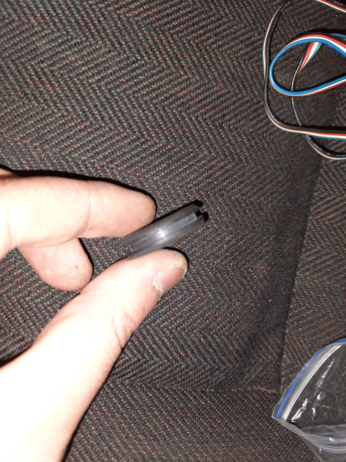 Далее надел на гофру резиновый уплотнители, а в саму гофру продел жгут. Иначе потом её не надеть.