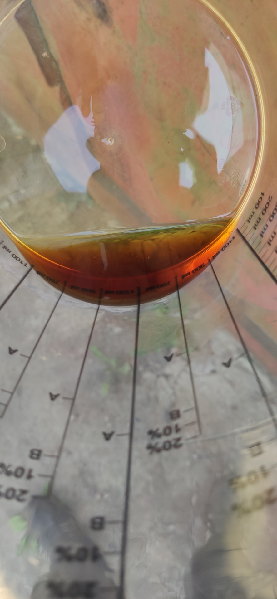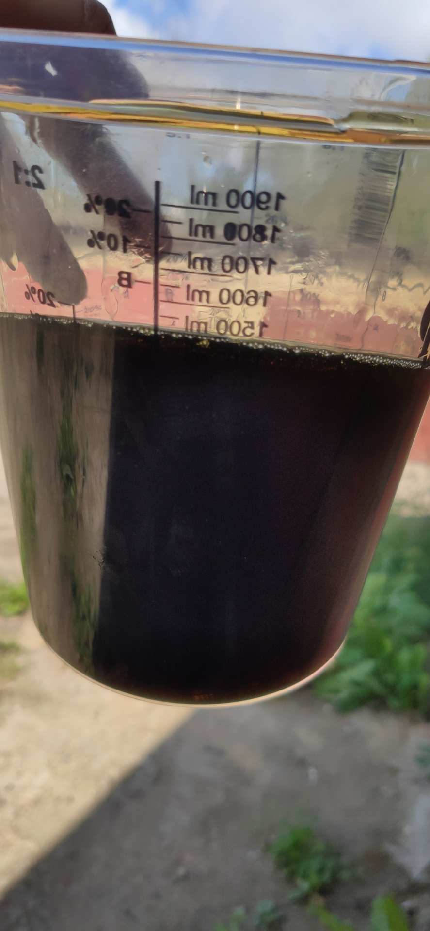 2. Сливаем все месево в мерную емкость, и смотрим сколько же там залито: