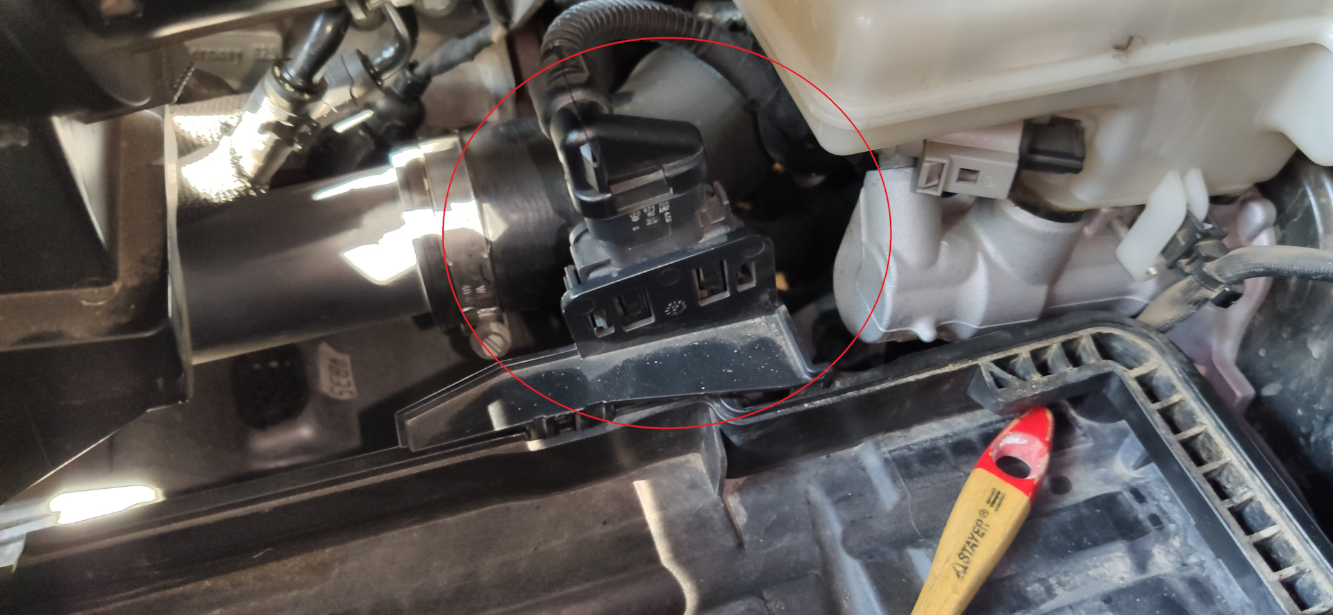 Дальше все советовали скинуть площадку аккумулятора. Прочитав все инструкции драйва, начал снимать. Тут болт, там болт. Дальше фиксация на корпусе воздушного фильтра, который фиксируется к телевизору, который фиксируется… тьфу… плюс крепление датчиков. Подумал, посмотрел. Нафиг это дело. К сапуну прекрасный доступ и так, не смотря на то что находится под площадкой.