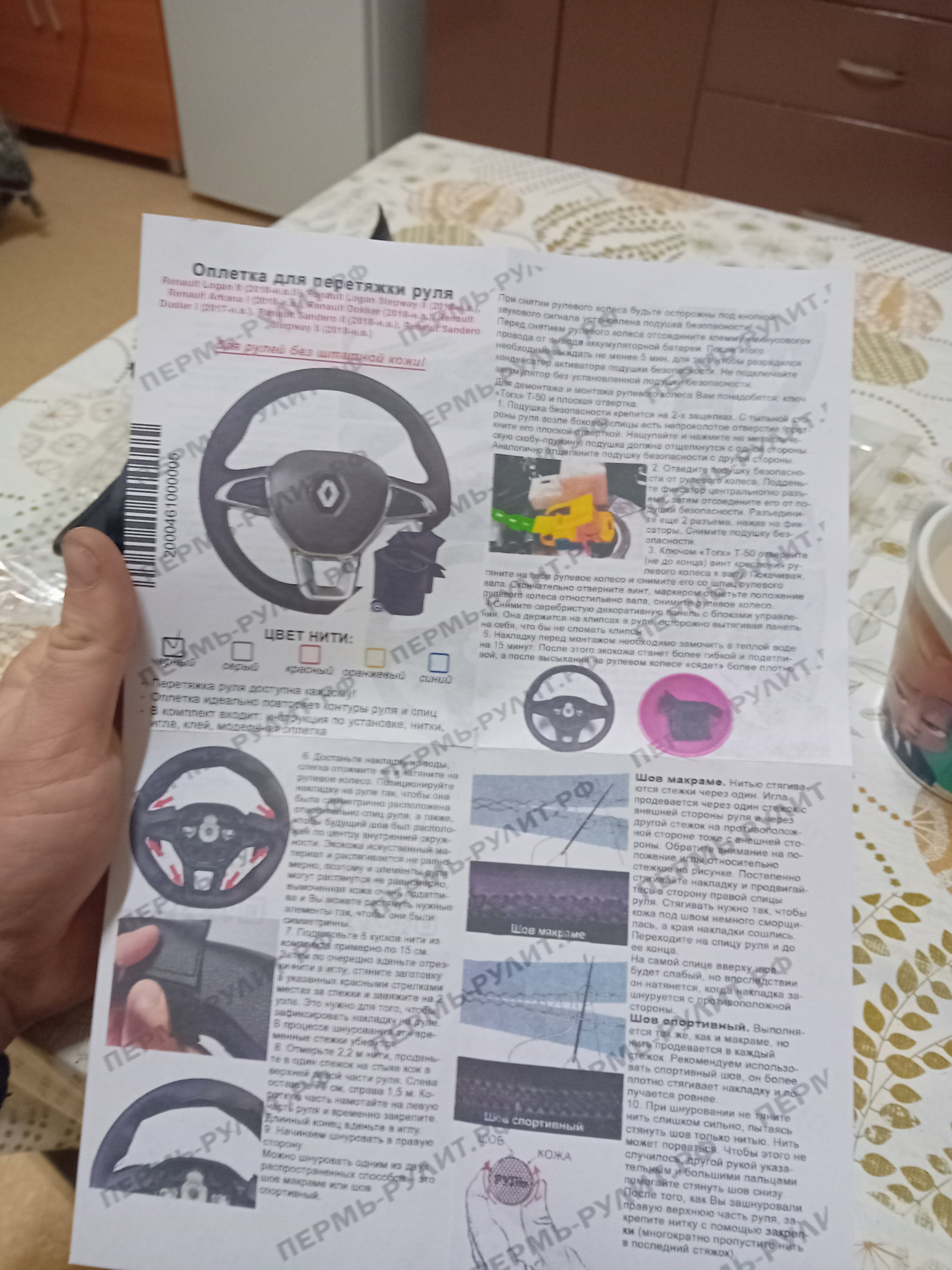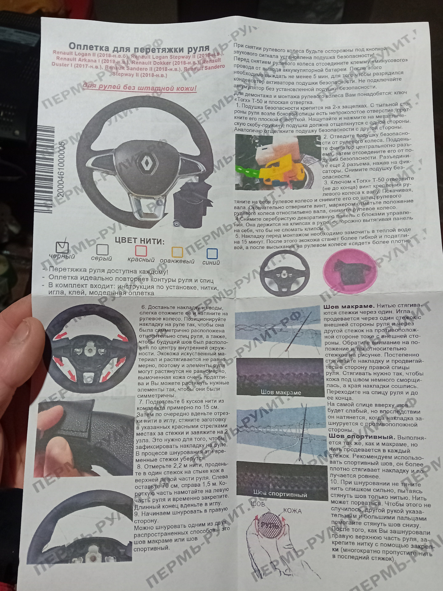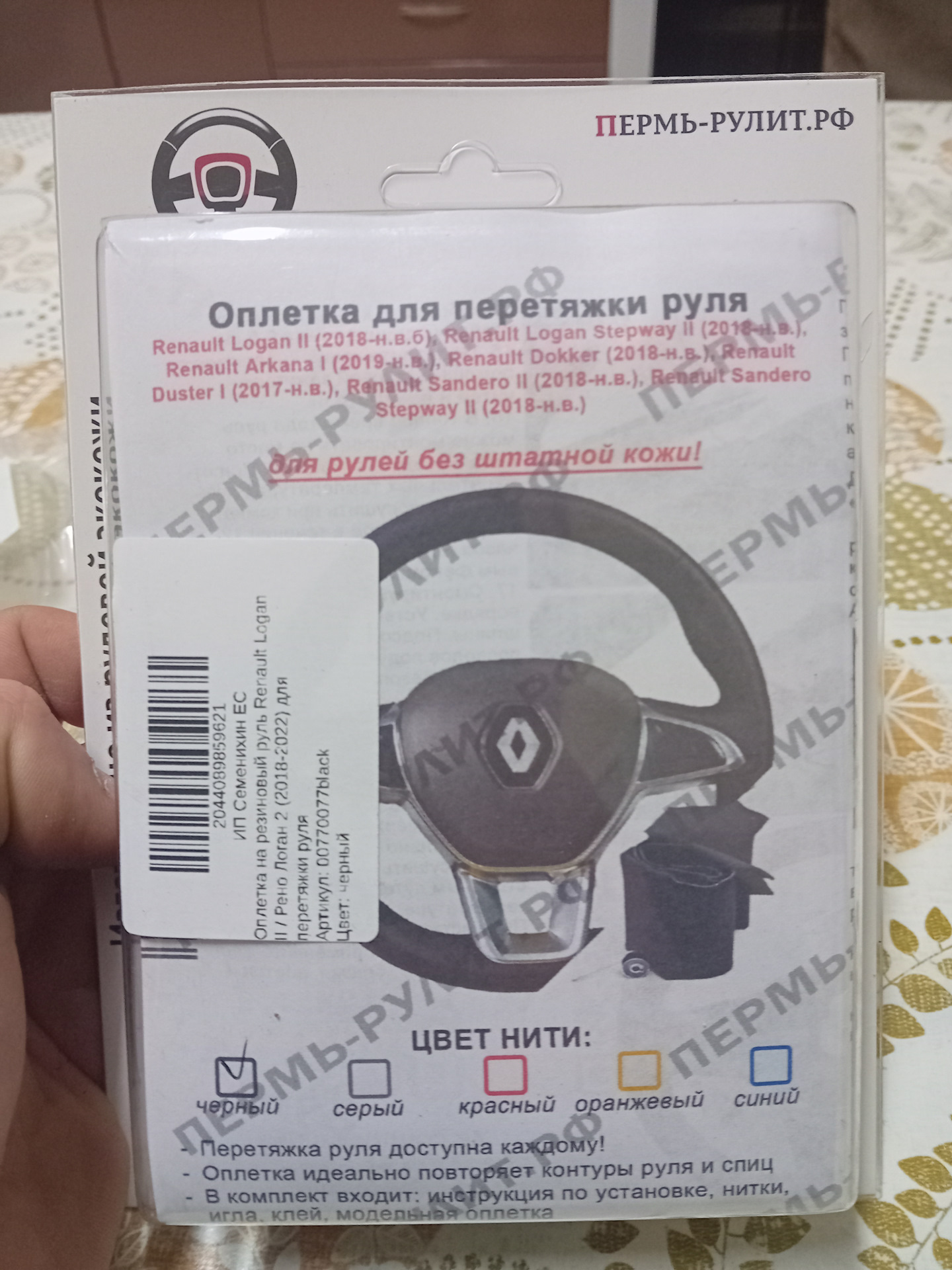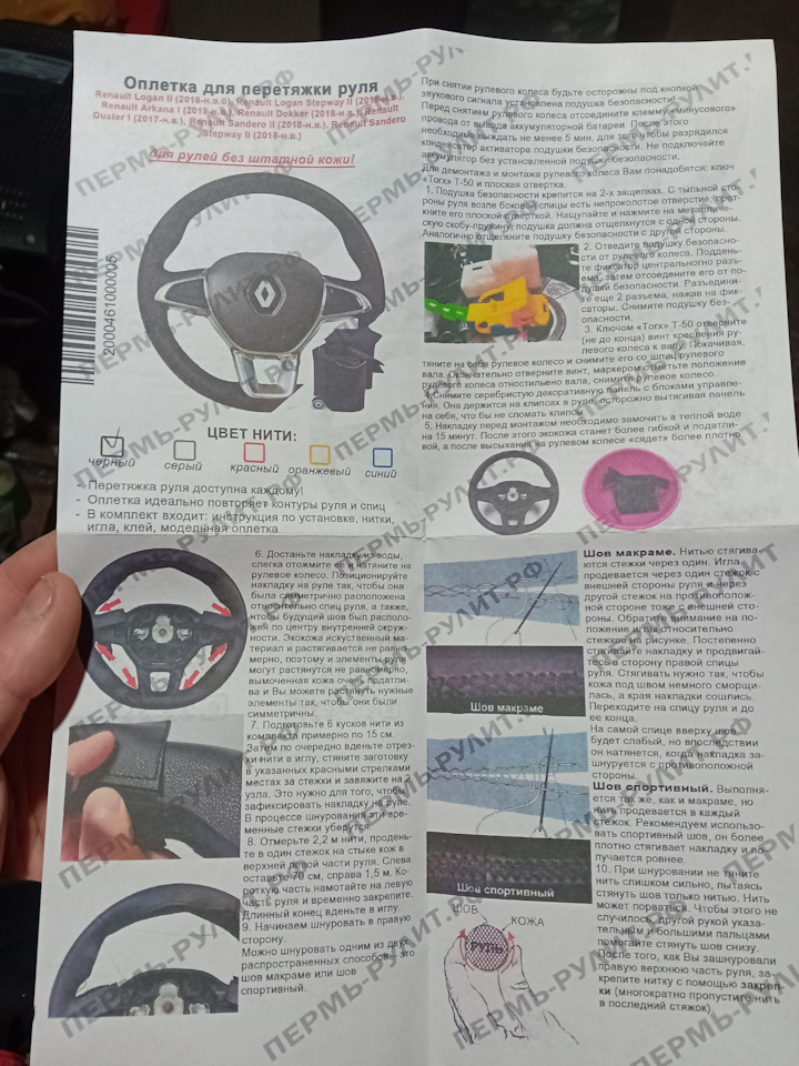 Оплетка на резиновый руль Renault Logan II / Рено Логан 2 (2018-2022) для перетяжки руля Пермь-рулит