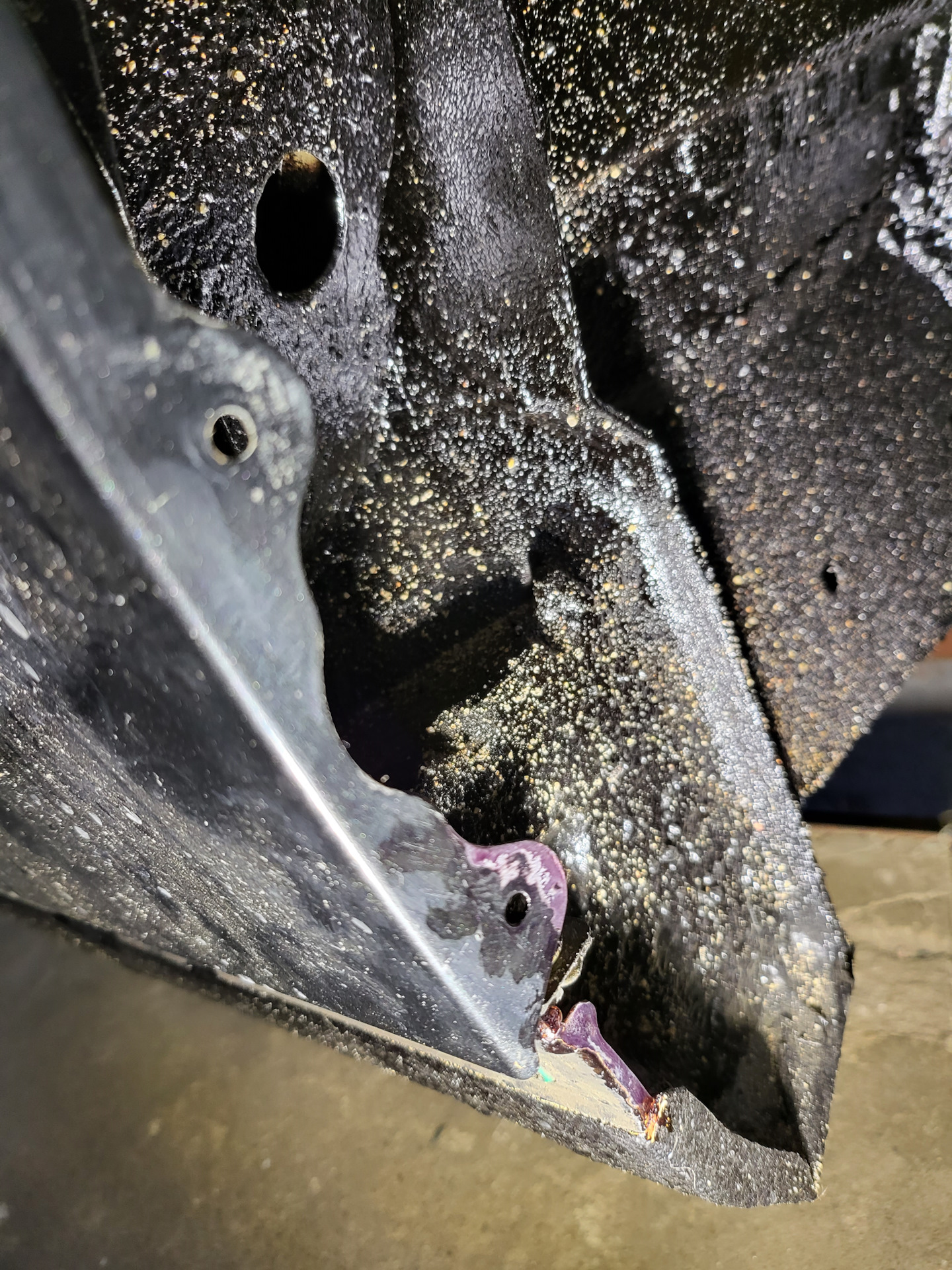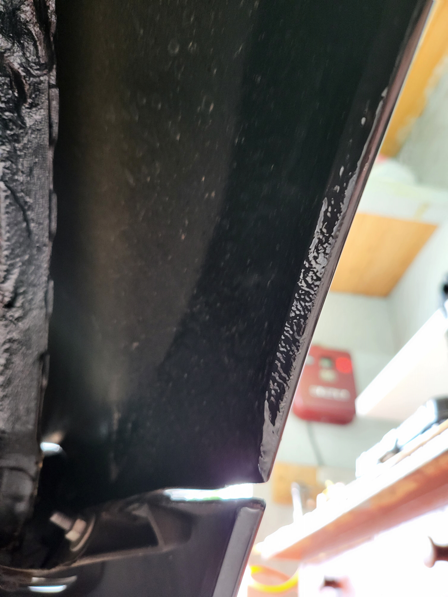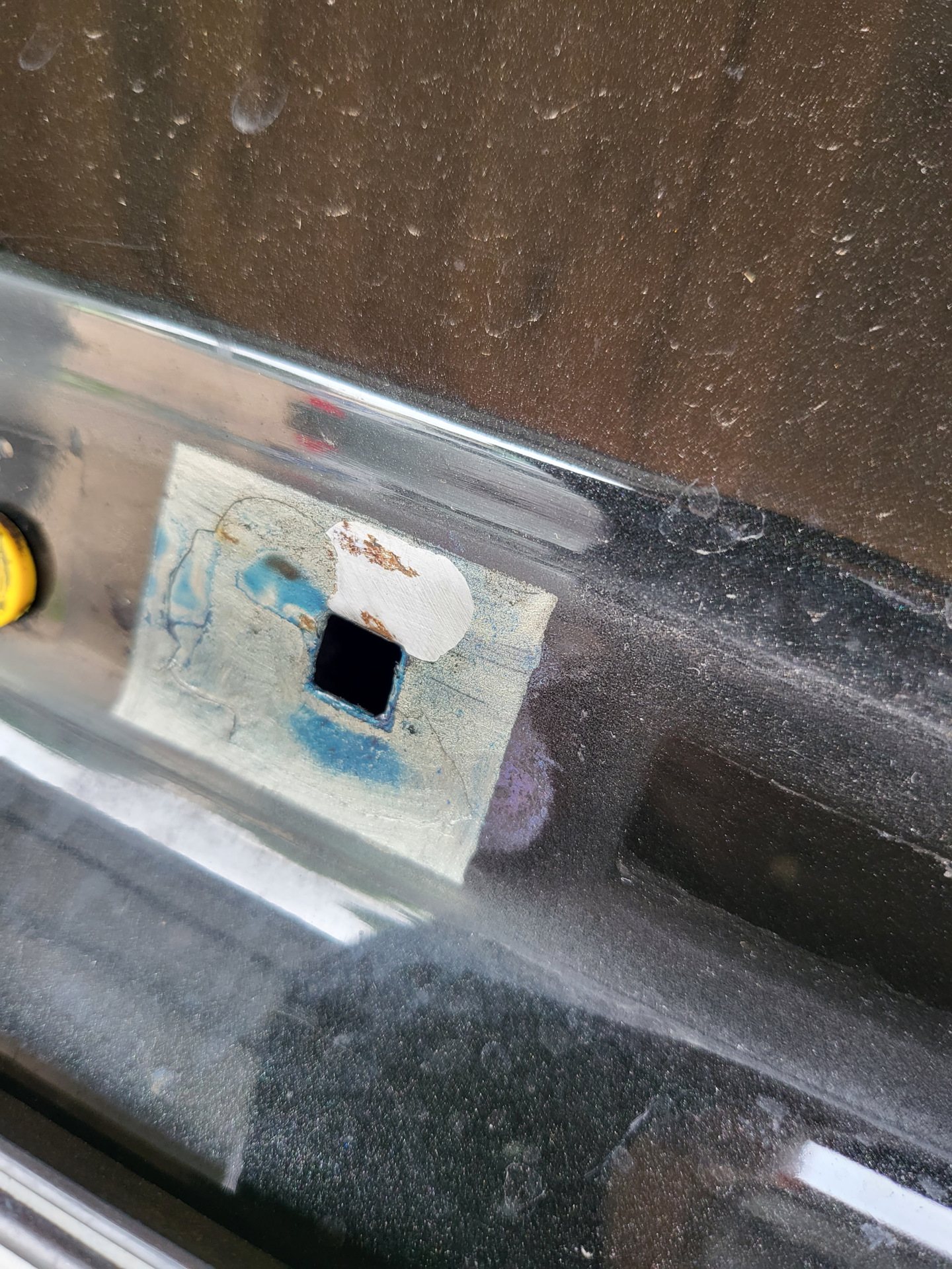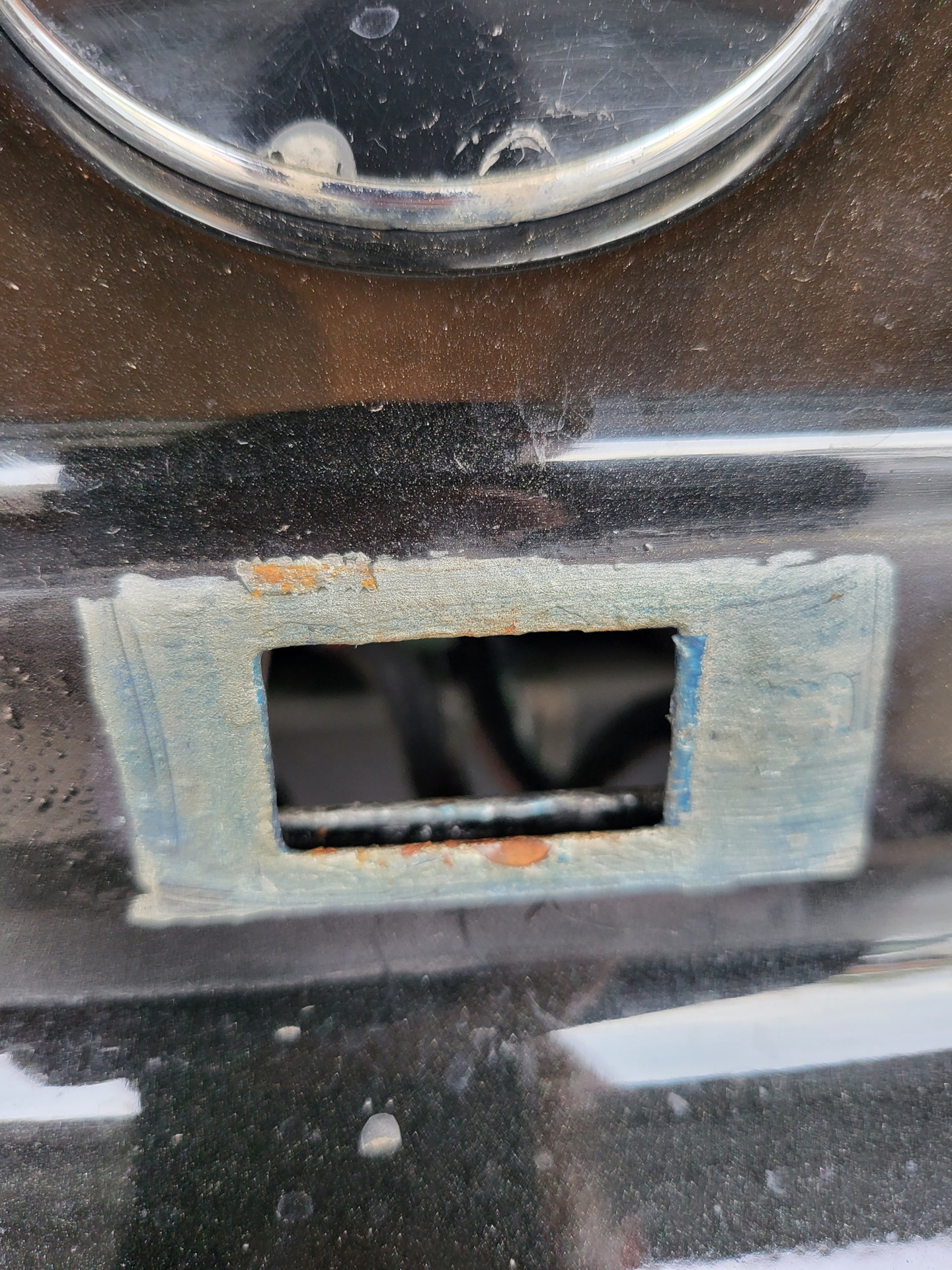 Тогда, под идущим снегом и температуре воздуха -10, я замазал голый металл хаммерайтом, и поставил планку подсветки на место, понимая, что летом туда нужно залезть. Ну, что я могу сказать, хаммерайт, намазанный кистью на морозе, продержался молодцом. Явно лучше отлупившейся краски =)