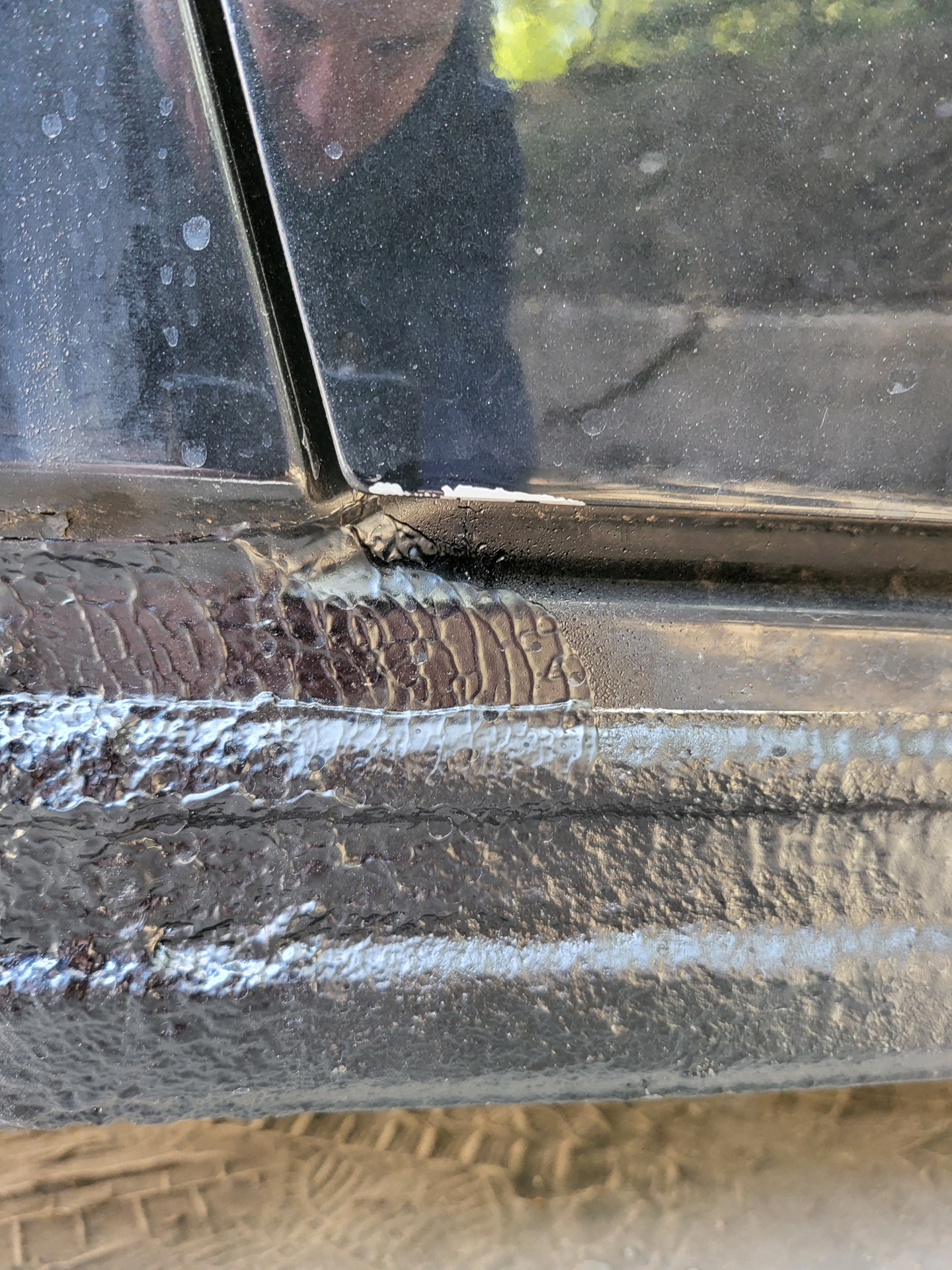 Пока машина каталась по сервисам, похоже, где-то ударили дверь.