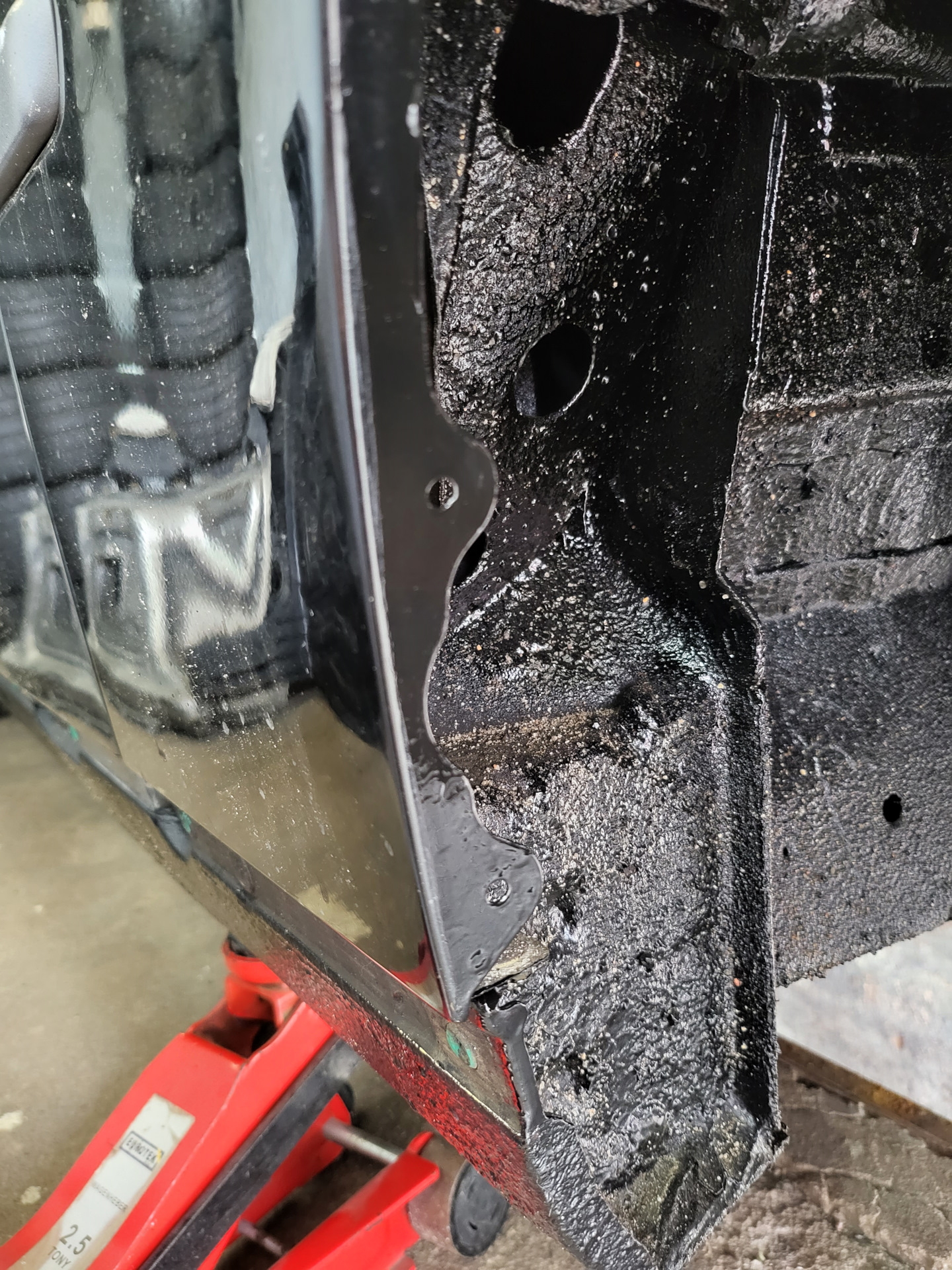 Нашел пару жучков на обратной стороне стакана под капотом, где у малолитражек стоит аккумулятор. Подчистил дремелем и задул из баллончика, так как, если бы я покрасил кистью, сильно бросалось бы в глаза.