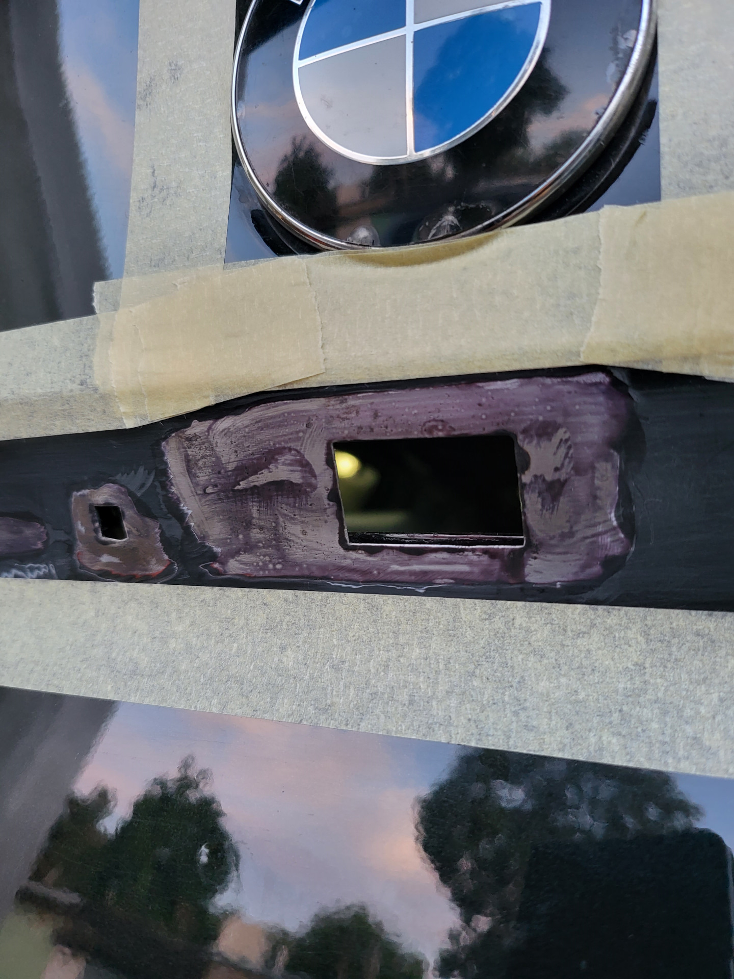 На следующий день, хоть в инструкции к средству и написано, что этого делать не нужно, заматовал высохший слой. Затем оклеил малярным скотчем, сформировав линию, по которой буду красить.