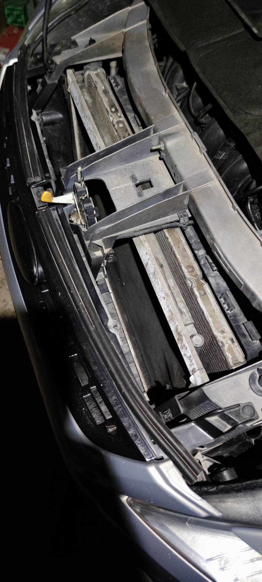 Остатки задерживает "москитный экран", кому интересно размер по наружной 70*50 см. Ставится снизу сняв направляющую воздушного потока (естественно на подъёмнике). Сдерживает не только остатки мух, но и способствует так сказать целостности радиатора.