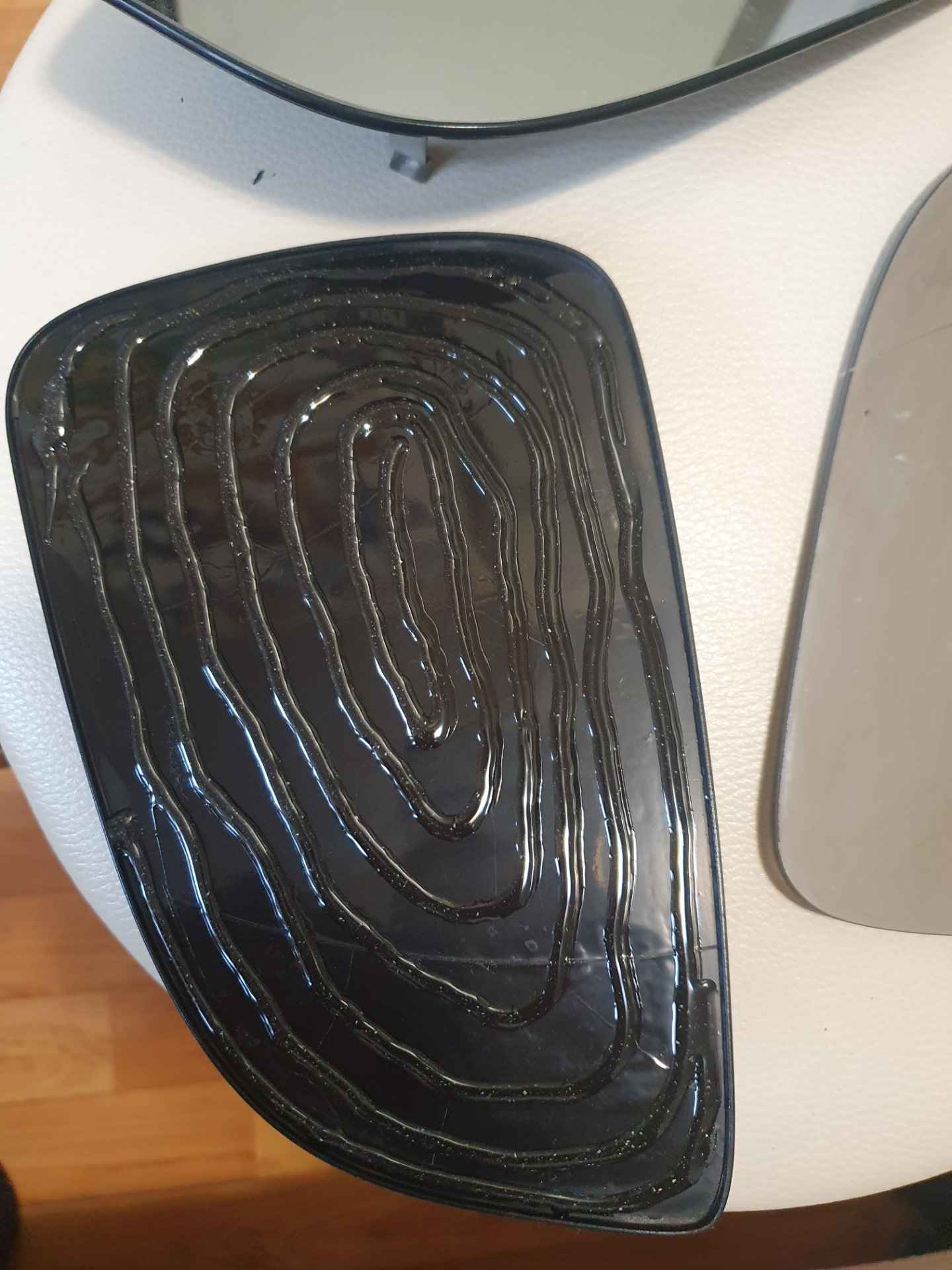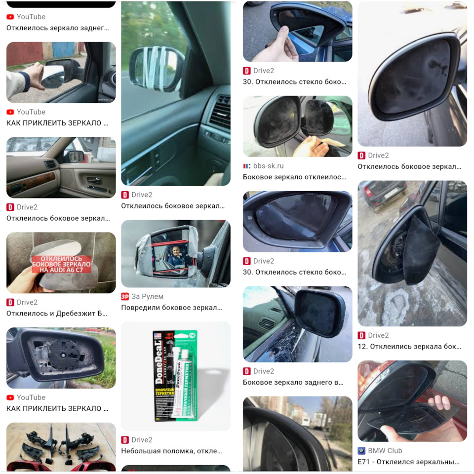 Приехал вчера на работу в ночь и решил немного подрегулировать зеркало, оно немного в уголке обледенело и не шевелилось, я вышел из машины решил его почистить от льда, дотронулся к зеркалу и оно оказалось у меня в руке, снял временно приклеил скотч чтобы домой доехать. По приезду снял оба зеркальных элемента сами зеркала закрыл скотчем чтобы снег не налетел. Пришёл домой обезжирил и проклеил водительское, а вот со стороны пассажира которое стояло, не отодрать было, только в уголки кое как позаливал клей, но все равно теперь спокоен что по дороге не отвалится.