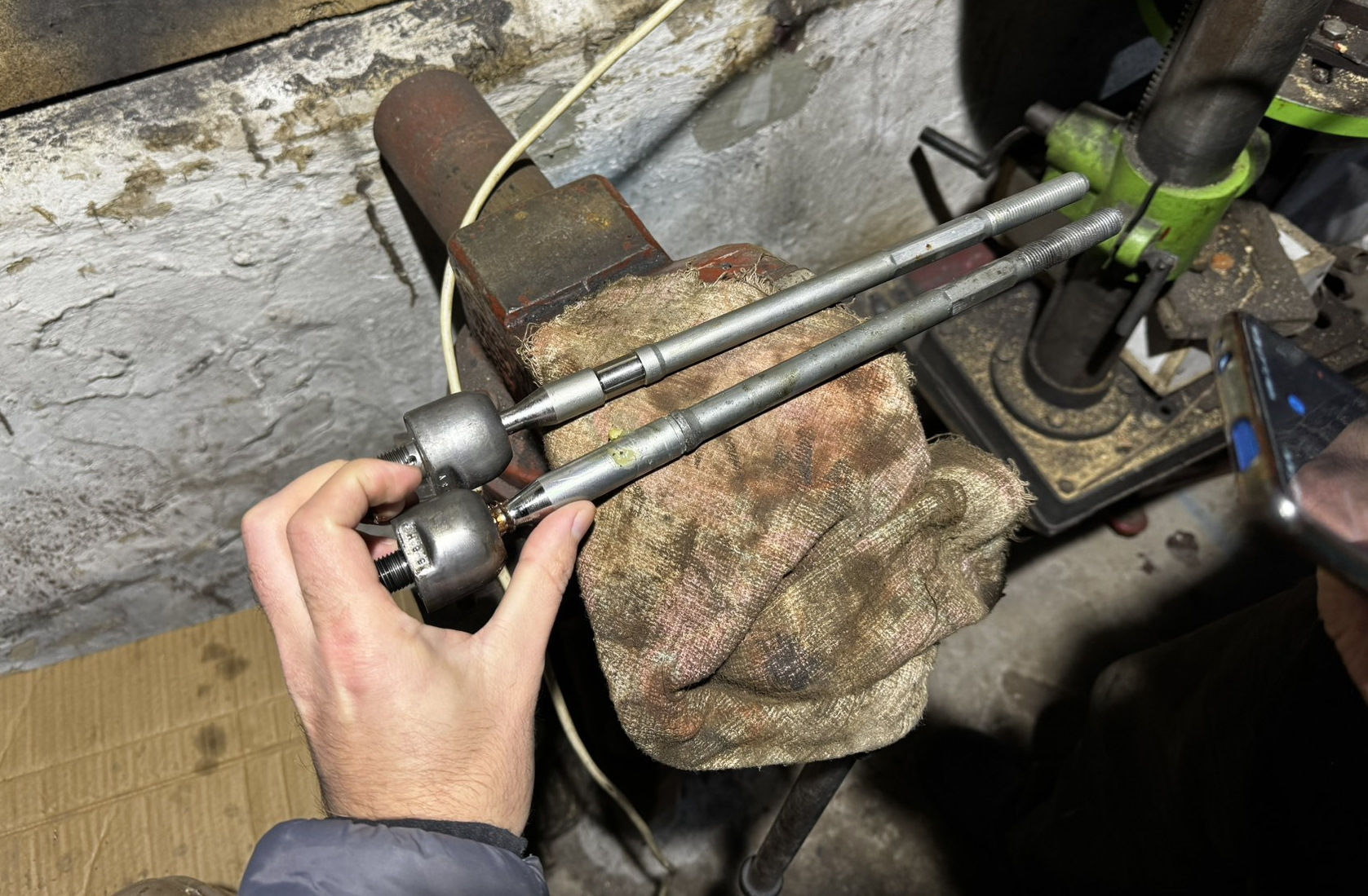 При езде по мелким неровностям, латкам и мелкой щебенке в тишине на EV доставал мелкий бубнеж с левой стороны. Очередной раз заморочив голову Юре с этой проблемой, он пришел к выводу что я ошибаюсь, проблема не в рулевой рейке а в левой рулевом тяге. Я на радостях заказываю от outlander 3 и еду в субботу на замену. Разбираем машину снимаем тягу и как говорил классик "діла йшли не те шо х*йово, но і ніззя сказать, шо харашо".