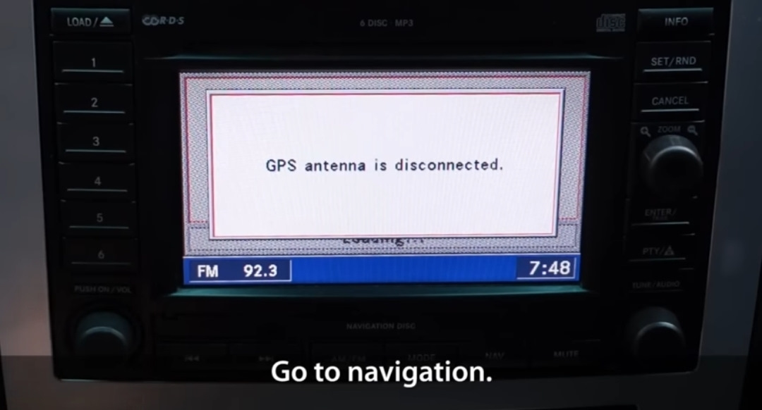 После подключения антенны все заработало, ну как все почти … Судя по надписи чистить придется читалку навигационного диска