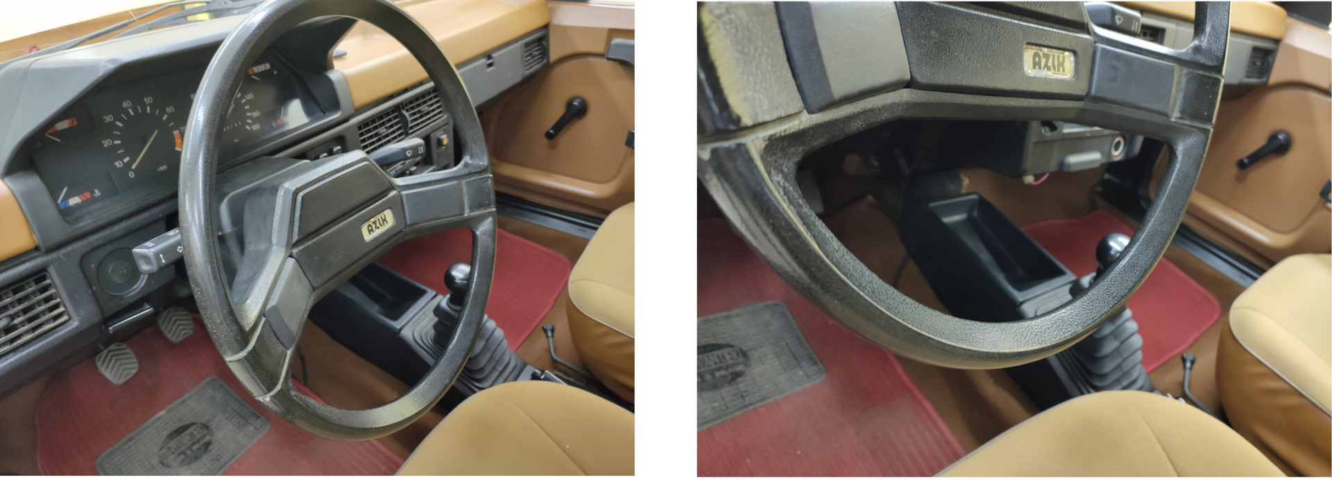Кстати, про руль. 89 год — такой же «граненый» Да, и на нашем, хром накладки опускных стёкол дверей тоже хром. Но об этом я узнал относительно недавно, потому что с завода они были покрашены в чёрный. Настолько хорошо, что краска эта отходить местами начала лет через двадцать после покраски. Вот бы они всю машину так красили😂