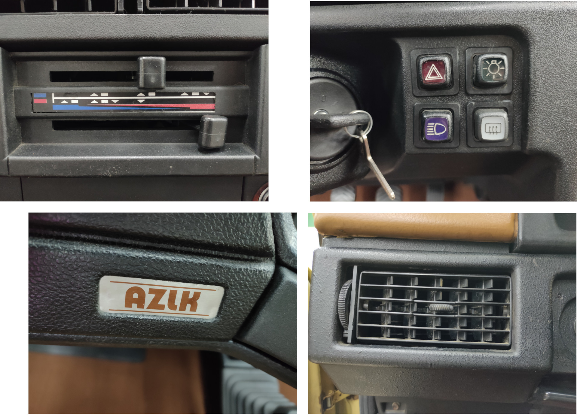Вот что я знал о ранних Алеко, не более того, это повторитель в передней части крыла и надпись на крыле, в 1990 году вроде стало уже всем привычное размещение бокового указателя поворота, он же БУП, если говорить конструкторским языкомНемецкая оптика DDR-Ruhla, знаю еще были FER, а в 90ых BOSCHОптика в деталяхЗамковый уплотнитель ветрового стекла, а у ранних машин, оказывается, отсутствовал обогрев стекла, не зналКорма 2141 мне больше всего нравилась в облике машины, не понимаю, почему все так гоняются за поздними, более высокими фонарями, на мой взгляд дизайн от этого проигрывает. Орнамент так низко приклеен с завода, собственно в вышеупомянутом фильме аналогичноПродолжим тему остекления — здесь совсем отличный уплотнитель глухих боковых форточек, виден еще след 70ых годов, на предсерийных авто вставлялся хромированный молдинг по периметру стекла, также обратил внимание на прокрас черным цветом под пластиковой заглушкой, чего не встречал ранееШтамп на стеклах 1986 годаБоковое зеркало на ранних авто шло от 2108, уже потом появятся собственные. Заглушка правого зеркала проживет до конца существования завода в 2002ом), хром накладка опускных стекол, хром на металлической форсунке стеклоомывателяОбивки дверей. Сколько же их было по гарантии заменено, внешнее покрытие детали отходио в области подлокотника. Здесь на удивление этой болезни нет. Сначала были в таком исполнении, потом появился второй вариант с ворсом. У машины января 1987 года в салоне как и у первых 08 много черных пластиковых элементов. Здесь дверной карман черного цвета на машине января 1987 го года и уже более знакомый по серийным машинам коричневый кармашек на авто марта87-го г.в.Второй момент внутренние ручки открывания. Открывашки здесь намного длиннее чем у серийных авто, обратите внимание, как выступает эта деталь. У более ранней машины она также чернаяТакже необычно в сравнении с серийными авто — здесь исполнение крепление рукоятки двери, просто, на два шурупа, без декоративных заглушек, да и ручка по форме также отлична, на широкосерийных авто этого не увидитеМашина как новая, интерьер март 1987го года. Черный низ панели приборов, черный руль. Обычно они темно коричневые, здесь скорее всего проблема в освоении цветного пластикового литья, поэтому пока все черноеКомплектность соответствует году выпуска, на первых авто не было полочки радиоприемника, смотрится без этой детали непривычно. Но здесь, как и у 2108 первых лет — самая пустая комплектацияДьявол в мелочах — указатель управления печкой отличный от серийных авто. Разноцветные кнопки, одна от 2108, дефицит деталей для начало выпуска на лицо, как говорится. Шрифт на руле красноватого оттенка. Обратите внимание на текстуру пластика на машине января 1987 года, как будто антигравием прошлись, след обходных технологий. На широкой серии пластик отличался и структурой, и коричневым оттенкомКак и у ранних 2108 у этих авто черный центральны тоннельКомбинация приборов — тут также море отличий — нет суточного пробега, одометр до 99 999 км, обычно был до 999 999км.Шкалы датчиков раскрашены по иному, непривычно