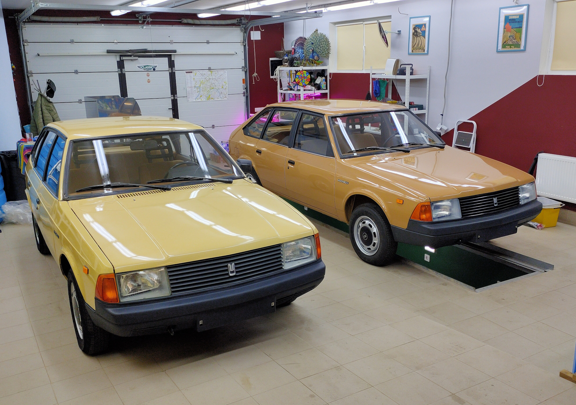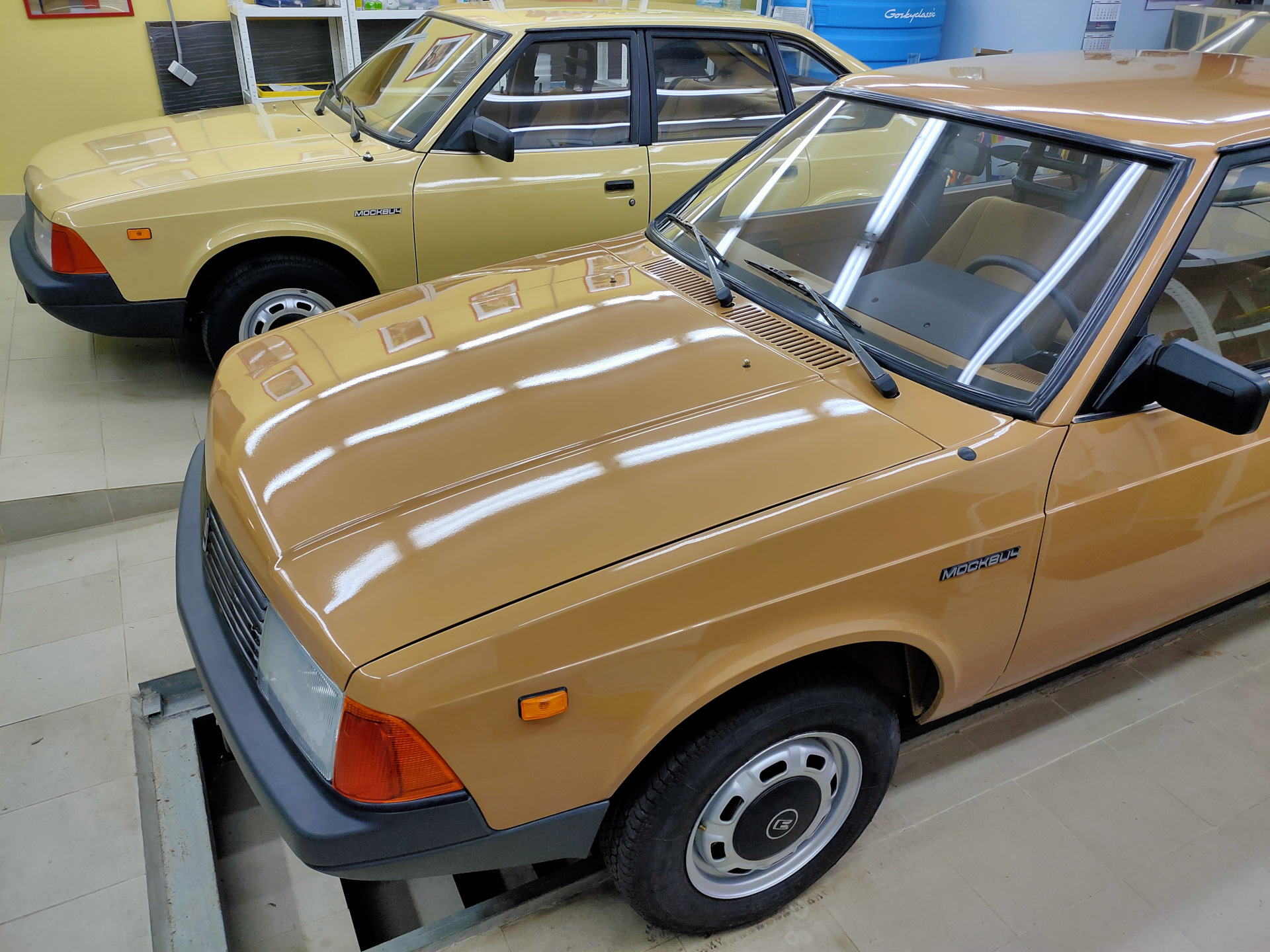 В частной коллекции было два аутентичных и малопробежных Москвича 2141, назовем их — "из первой тысячи" . Это 1987г.в. желтый в цвете "Гоби" и рыжий 1987 г.в. в цвете "Таврия", последний я почти и не помню, нечастый оттенок для Aleko.