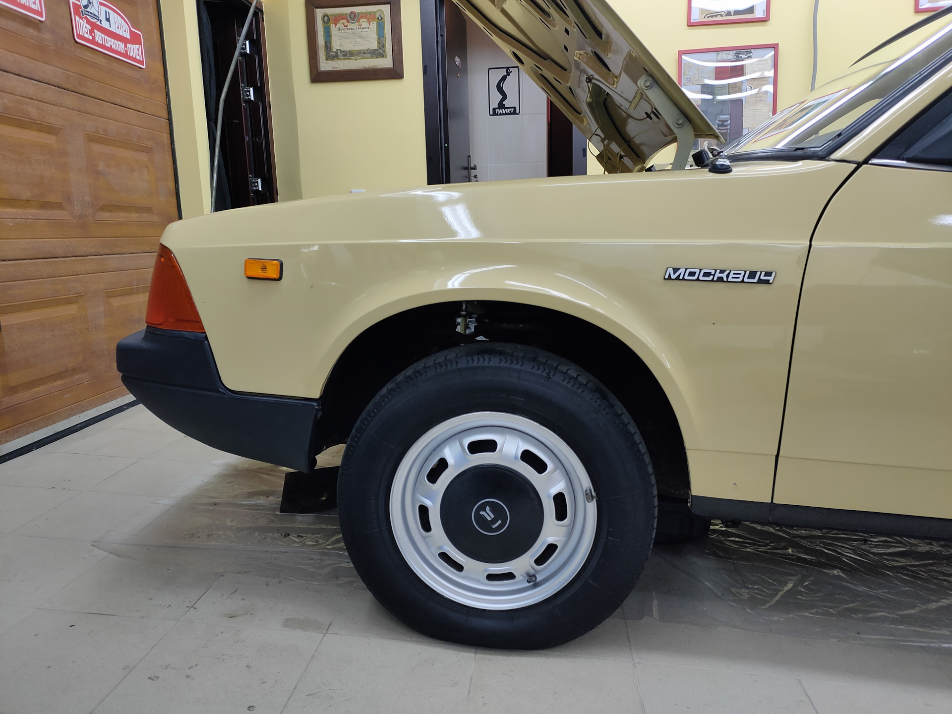 Интересный форма обода у руля января 1987 г.в. Острая грань, на серийных такой явно выраженной линии не бываетКлюч зажигания еще не обзавелся надписью, тоже особенность первых машинУплотнители дверей коричневые, на авто января 1987 года черный, видно, цветную резину не освоили) Пороги в ногах отличны — числом крепежных шуруповОбивка потолка — без доп. пластиковых винтов крепления посередине крыши, хотя, когда они появились, не знаю, может это не отличие ранних обивок. Ручки на потолке и рамки плафонов черные, чего также не встретишь на обычных авто, там они коричневые. Накладка зеркала черная, обычно они коричневыеОбивки сидений — тот же капровелюр, что и на 2108Обивка багажника, в сравнении с 2108 тех лет сразу ощущается, что авто классом выше, планировалось) багажник у Москвича и правда выглядит весьма опрятным. Подсветка, боковые органайзеры, все по-взрослому. Югославские газовые опоры пятой двери, той же фирмы шли и на ранние 2108Коричневая полка с обратной стороны черная1001 отличие. Вот на машине января 87 го года есть отверстие в задней двери, чего невидно в авто марта 87 го годаБлок управления клапана карбюратора — также чуть отличаютсяКожух вентилятора ранних машин тоже чуть отличныйНижнее крепление также отличаетсяПод капотом первые года выпуска шел мотор от ВАЗ-2106 1.6L, пока завод пытался освоить мощности для выпуска новой линейки двигателей, но этого не случилось, а дальше Вы всё знаетеАвто как с конвейера, мне лично цвет зашел а Вам как?!Кузов из первых сотен, еще и табличка в прекрасном сохране, не смыта перекупскими самомоями и проч. криворукостьюДиски для Москвича выпускал АвтоВАЗ, кстати. Отштамповка с указанием параметра диска, чего не встречалось в серии. Обратите внимание на ГОСТ московской МИ-180. ГОСТ -80, на серийных шинах ГОСТ — 86, зачет за аутентичный сохран