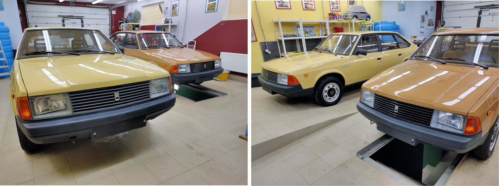 А т.к. желтый хетч предлагался к приобретению, не посмотреть живьем было нельзя. Согласитесь 1987г. для Aleko это сравни 1985г.в. у "Зубилы", не совсем корректное сравнение, первый год Москвича — это несколько сотен экз-ов. По данным в 86ом году сделано было 300-400 штук. Машину в цвете "Таврия" обновили только в части подвески и освежили лкп днища из-за ранее нанесенного антикора, его отмыли, но цвет краски стал очень темным, а в остальном перед нами хорошо сохранившиеся аутентичные авто. Думаю данные снимки многим пригодиться при реставрации подобных ТС.
