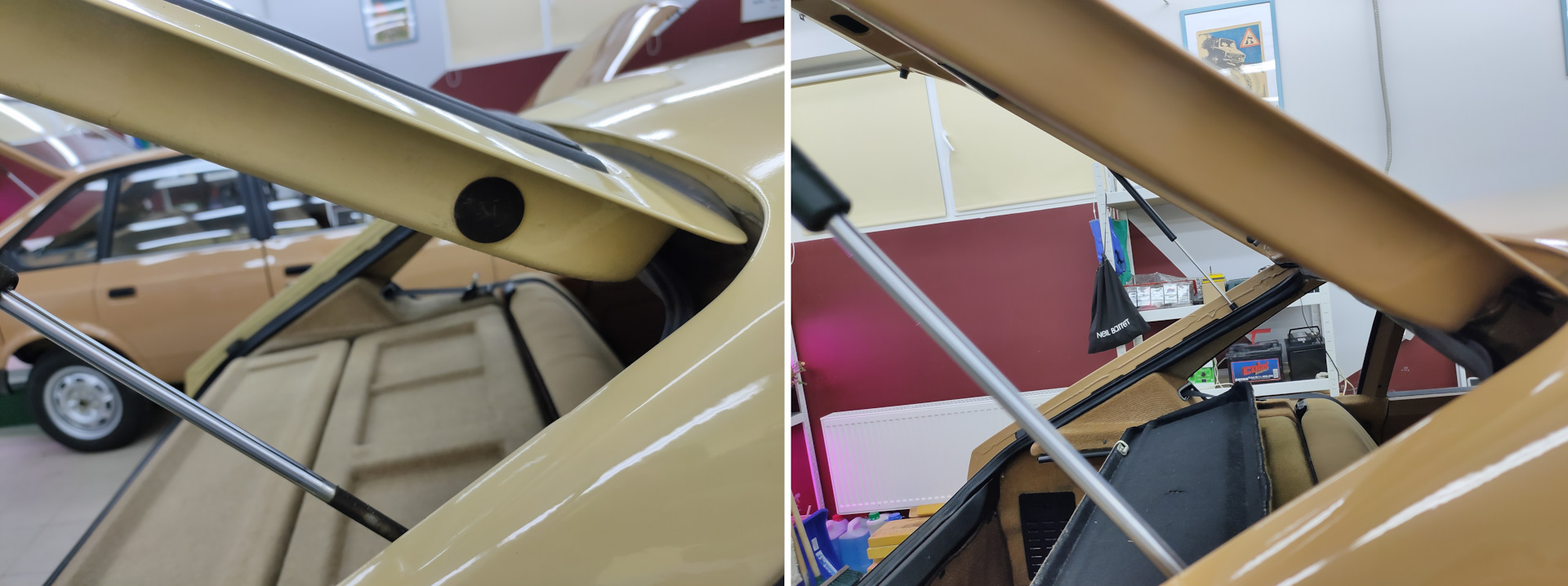 На обоих москвичах газовые упоры крышки багажника стоят не правильно… Уверен что крышка при открытии не замедляется в конце хода, а просто бьется в упор, да и не долго они так живут.