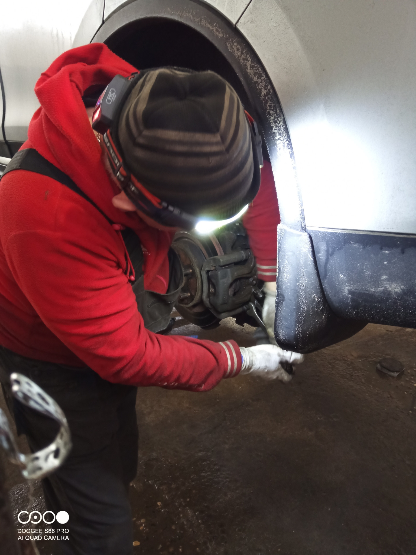 И вот в одной такой поездке в суботу, выходя из машины почувствовал запах жжёного, потрогал колеса, заднее левое теплое, а диск кипяток! При всём этом, машина ехала без каких либо задержек и натягов, накат тоже был свободный. Завёл авто, с открытой дверью смотря на колесо попробовал тронуться, вперёд/назад, крутится. Звоню своему мастеру, так и так, кипяток, давай приеду. В ответ, работать закончили, до вторника у них выходной, ставь машину на прикол.