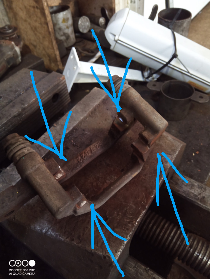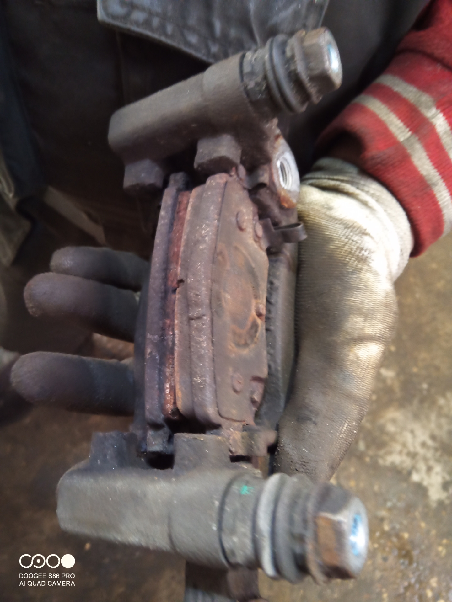 Направляющие в скобах, колодки в них клинит. Он эти разы болгаркой почистил, брызнул защитой. Грязь, реагенты…я ж вроде написал