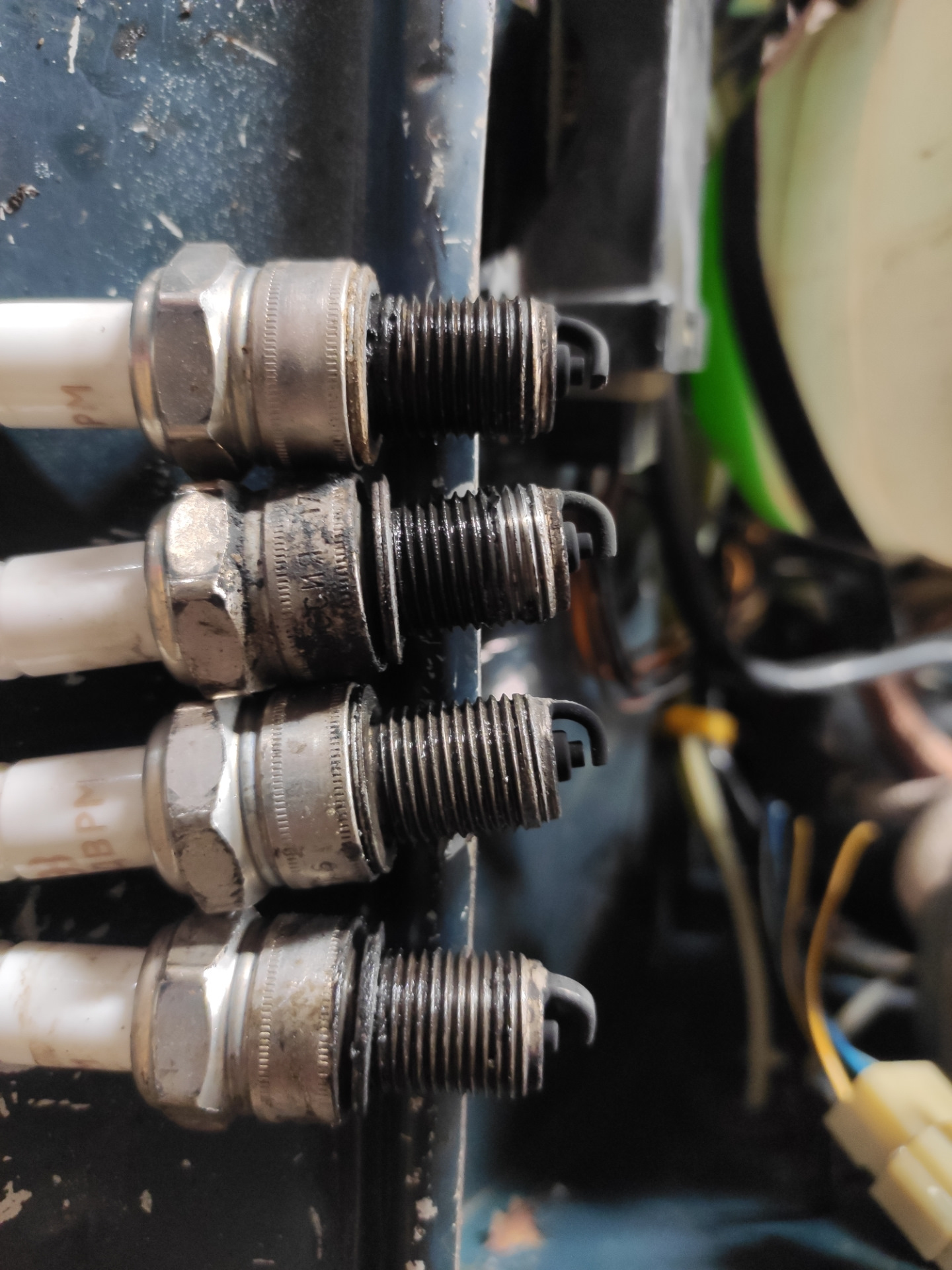 4) на следущий день привез канистру масла, новую прокладку под крышку гбц, выстучал саму крышку, начали выставлять зажигание — сдохла крышка трамблера, вернее концевик с катушки внутри крышки просто отвалился. Сьездил за новой крышкой, заодно прихватив свечи, Заменил крышку, вв провода так же поставил новые — мотор троит. Выкрутил свечи — не работает 3 горшок. Замер компрессии показал 5очков в нем, в остальных около заявленых 10.
